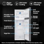 Additional Features : Stabilizer Free Operation (100v – 300v) | Multi Flow | Up to 15 Days of Fresh Food | Flat Door Design | Recess Handle | Easy Clean Back | Veg Box | Big Bottle Guard (Deep Door Guard) | LED Light
