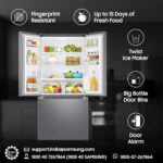 When it comes to refrigerators, the Samsung 580 L French Door Refrigerator stands out as a true marvel of modern appliance engineering. With its convertible design, digital inverter technology, and frost-free operation, it’s a powerhouse of convenience and efficiency.The standout feature of this refrigerator is its spacious French door design, providing easy access to both fresh and frozen foods. The 580-liter capacity ensures ample room for all your groceries, making it ideal for families or those who like to stock up on essentials.One of the most impressive aspects of this refrigerator is its convertible functionality. With the touch of a button, you can transform the freezer into additional fridge space, giving you the flexibility to adapt to your changing storage needs. Whether you’re hosting a party and need extra room for appetizers or simply need more space for fresh produce, this feature is incredibly convenient.The digital inverter technology is another highlight of this refrigerator. Not only does it ensure efficient cooling, but it also helps to maintain a consistent temperature, keeping your food fresher for longer. Additionally, the frost-free operation means you’ll never have to deal with the hassle of defrosting the freezer, saving you time and effort in the long run.In terms of design, the Samsung 580 L French Door Refrigerator is sleek and modern, making it a stylish addition to any kitchen. The stainless steel finish is not only aesthetically pleasing but also easy to clean and resistant to fingerprints.While this refrigerator boasts an impressive array of features, it’s not without its drawbacks. Some users have reported issues with the ice maker, experiencing occasional jams or slow ice production. Additionally, the price point may be a bit steep for some consumers, but given the quality and features offered, it’s a worthwhile investment for those in need of a reliable and spacious refrigerator.Overall, the Samsung 580 L French Door Refrigerator is a top contender in the world of kitchen appliances. Its innovative design, advanced technology, and ample storage space make it a must-have for anyone seeking convenience and efficiency in their home.