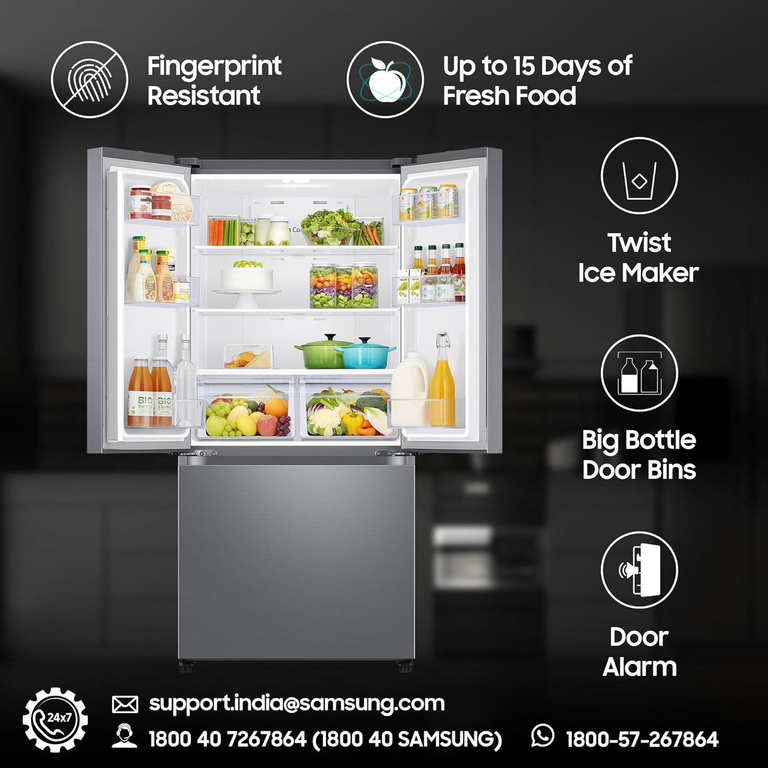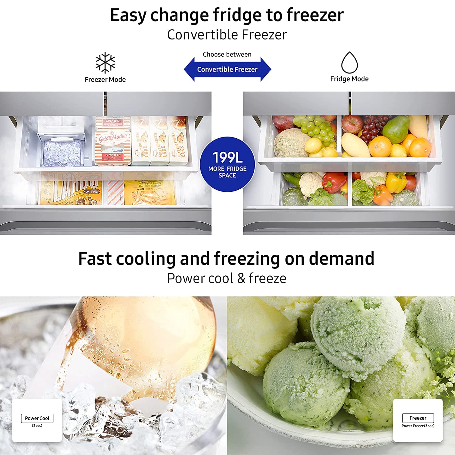 Special Features : Convertible | Twin Cooling Plus| Power Freeze | Power Cool | Fingerprint Resistant | Built-in Look | Easy Access Control