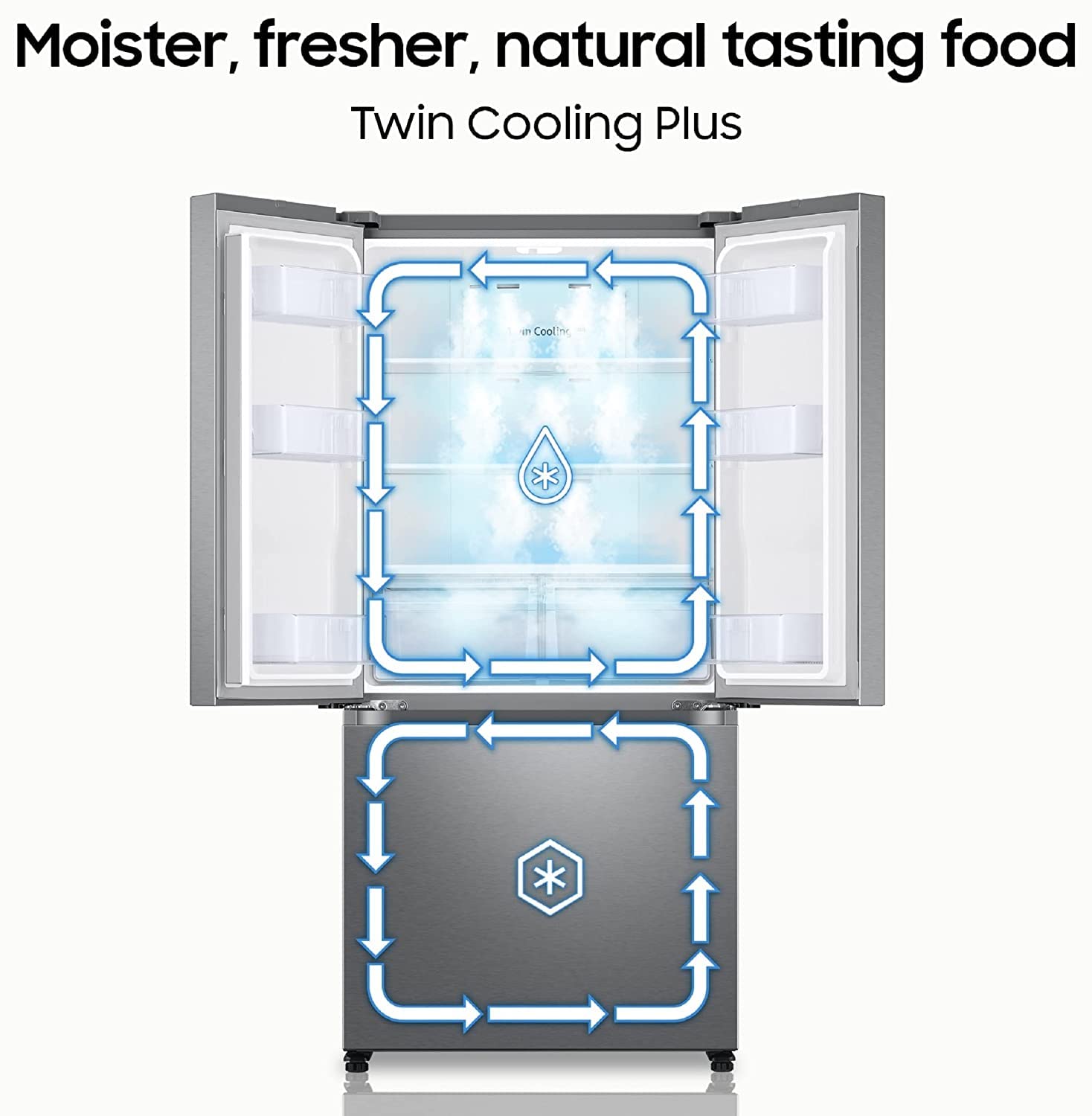 Twin Cooling Plus : Ensures food stays fresh and moist longer. Prevents odor from mixing between compartments