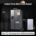 Samsung 633 L, 3 Star, Frost Free, Double Door, Convertible 5-in-1 Digital Inverter, Side By Side Refrigerator with AI, WiFi & Water & Ice Dispenser (RS78CG8543S9HL, Silver, Refined Inox)