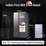 8 reviews for Samsung 653 L, 3 Star, Frost Free, Double Door, Convertible 5-in-1 Digital Inverter, Side By Side AI Enabled Smart Refrigerator with WiFi (RS76CG8003S9HL, Silver, Refined Inox)