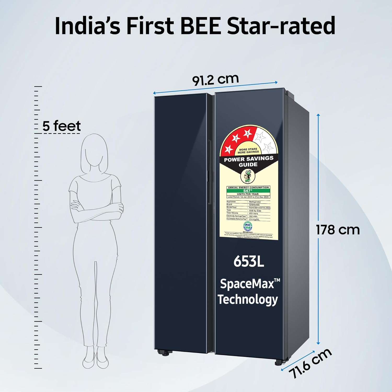 Samsung 653 Liters Bespoke Convertible 5 in 1 Side by Side Refrigerator (Clean Navy, RS76CB81A341)