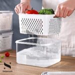 Built-in drain basket allows airflow and removes excess water, extending freshness of fruits and vegetables.