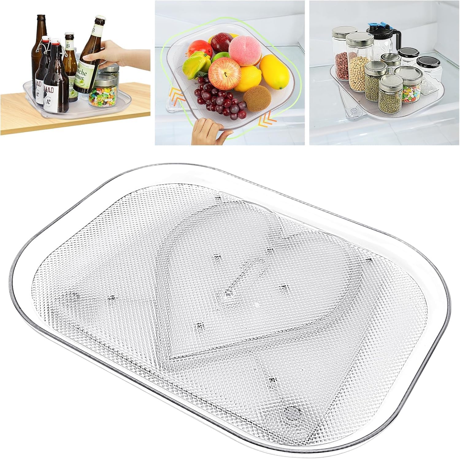 VERSATILE DESIGN: Multi-purpose rotating organiser tray perfect for refrigerator, kitchen counter, and pantry storage, keeping bottles, jars, spices, and other essentials neatly arranged