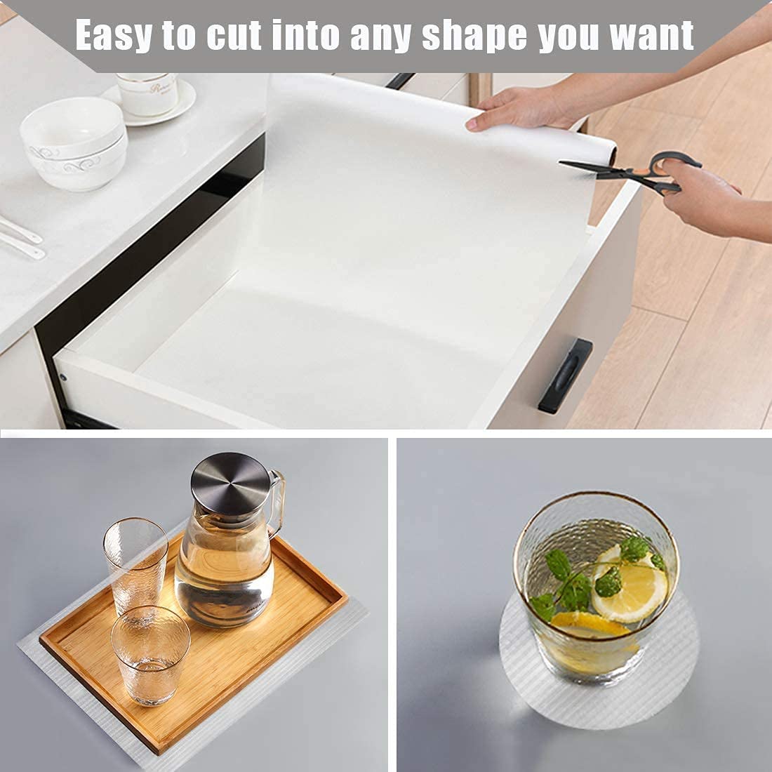 Easy to Clean & Cut : When stained with oil or dirt, Clapone kitchen shelf liners are a breeze to clean—simply wipe them down with mild soap or a damp cloth. Available in popular pre-cut sizes, these liners are also easily customizable—just use scissors or a knife to cut them to your desired shape and size.