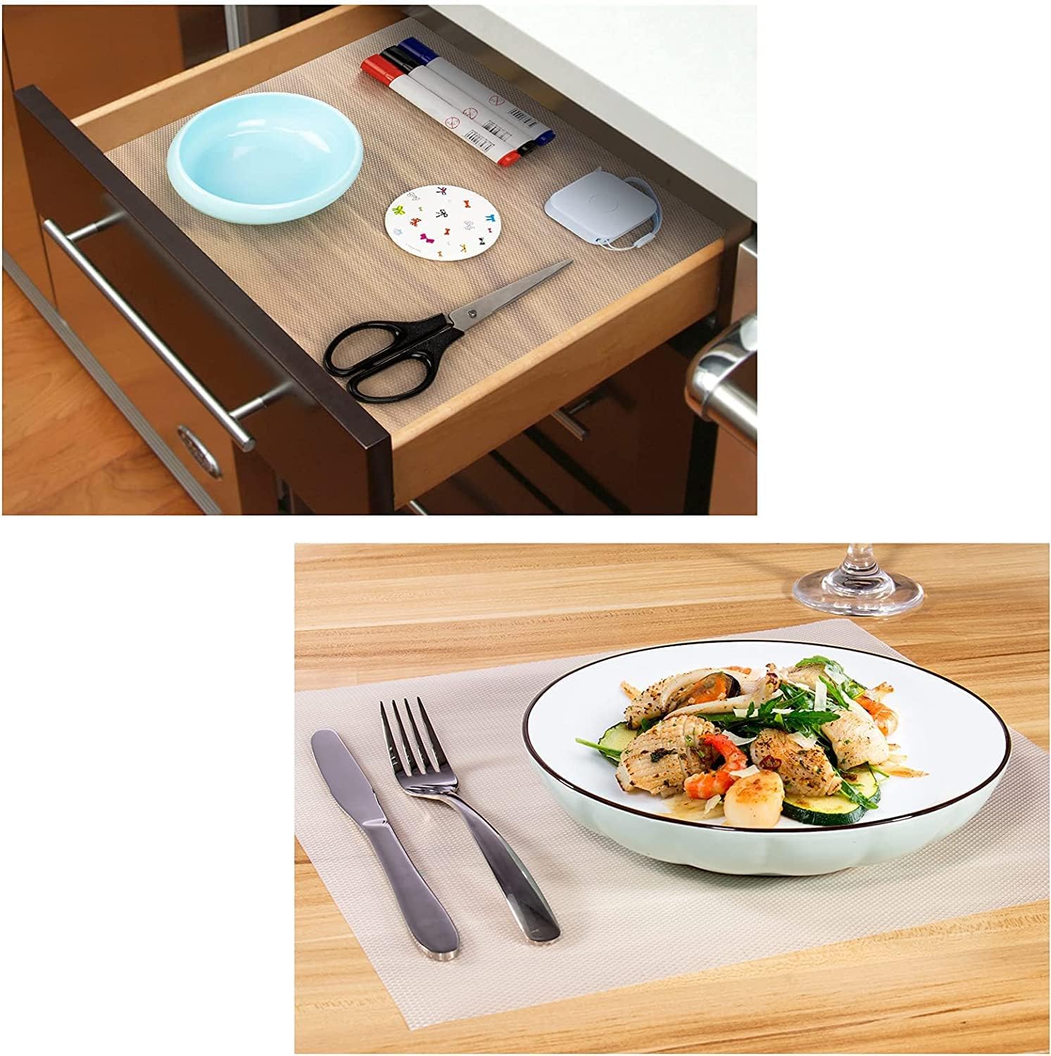 Versatile Uses : Clapone multipurpose mats are perfect for a variety of applications. Use them as kitchen liners to keep your cookware organized, or as refrigerator mats to maintain the freshness of food and fruits. These liners are also great for cabinets, drawers, cupboards, desks, shelves, and more—offering a practical solution for every space in your home or office.