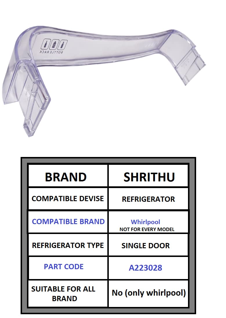This Bottle Shelf Is Only Suitable For Whirlpool Single Door Fridge Only. It Allows You To Put All Types Of Bottles, Such As Water Bottles, Soft Drinks, Ketchup Bottles. SHRITHU Bottle Shelf/Rack Ss A Replacement For Your Broken Whirlpool Fridge Bottle Shelf.