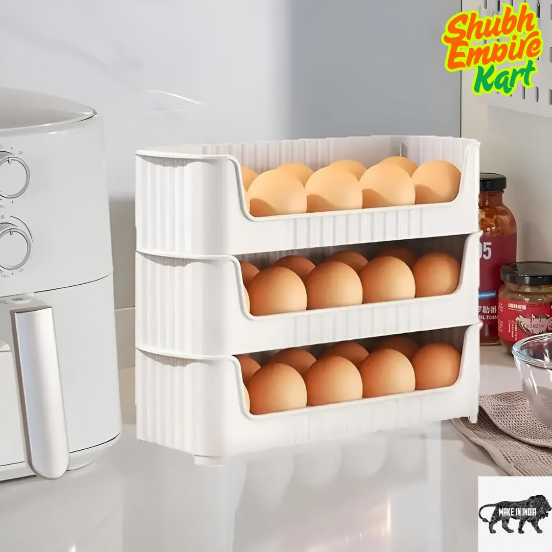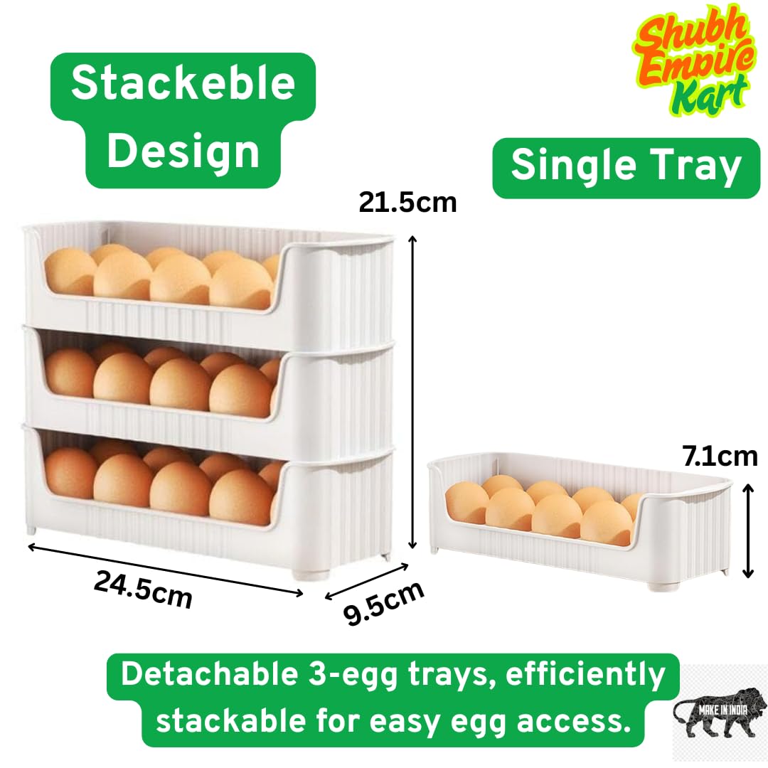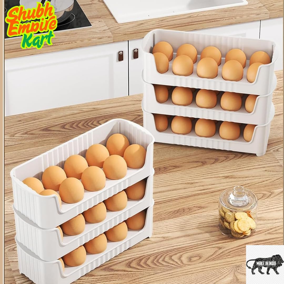 Shubh Empire Egg Holder, Eggs Storage Tray, 3 Tiers Egg Organizer For 30 Eggs Countertop, Stackable Plastic Egg Containers For Fridge, Space Saving, Easy Access, Egg Dispenser| Plastic Egg Tray 3 PCS