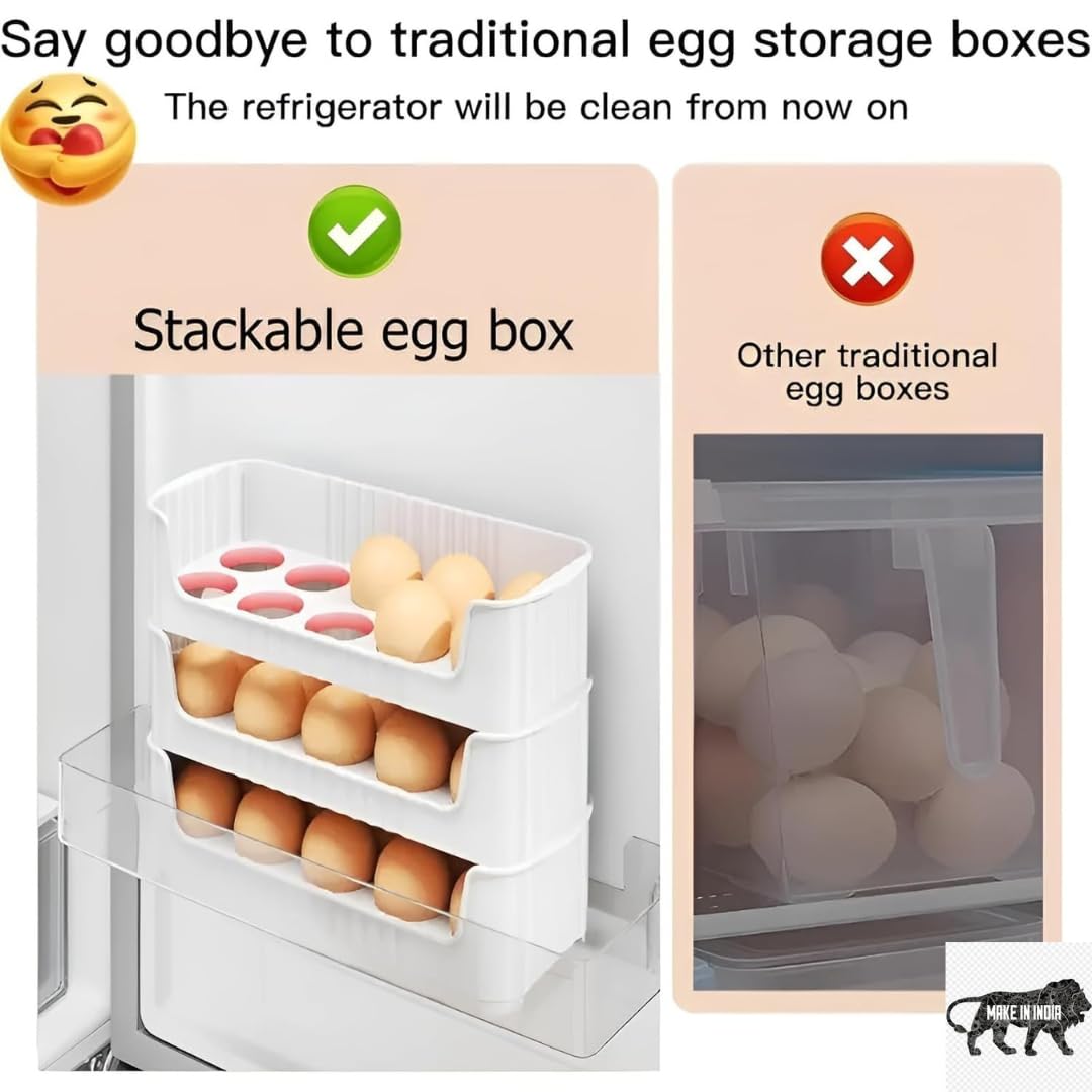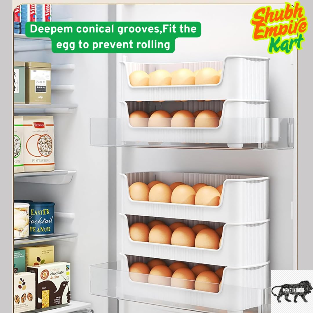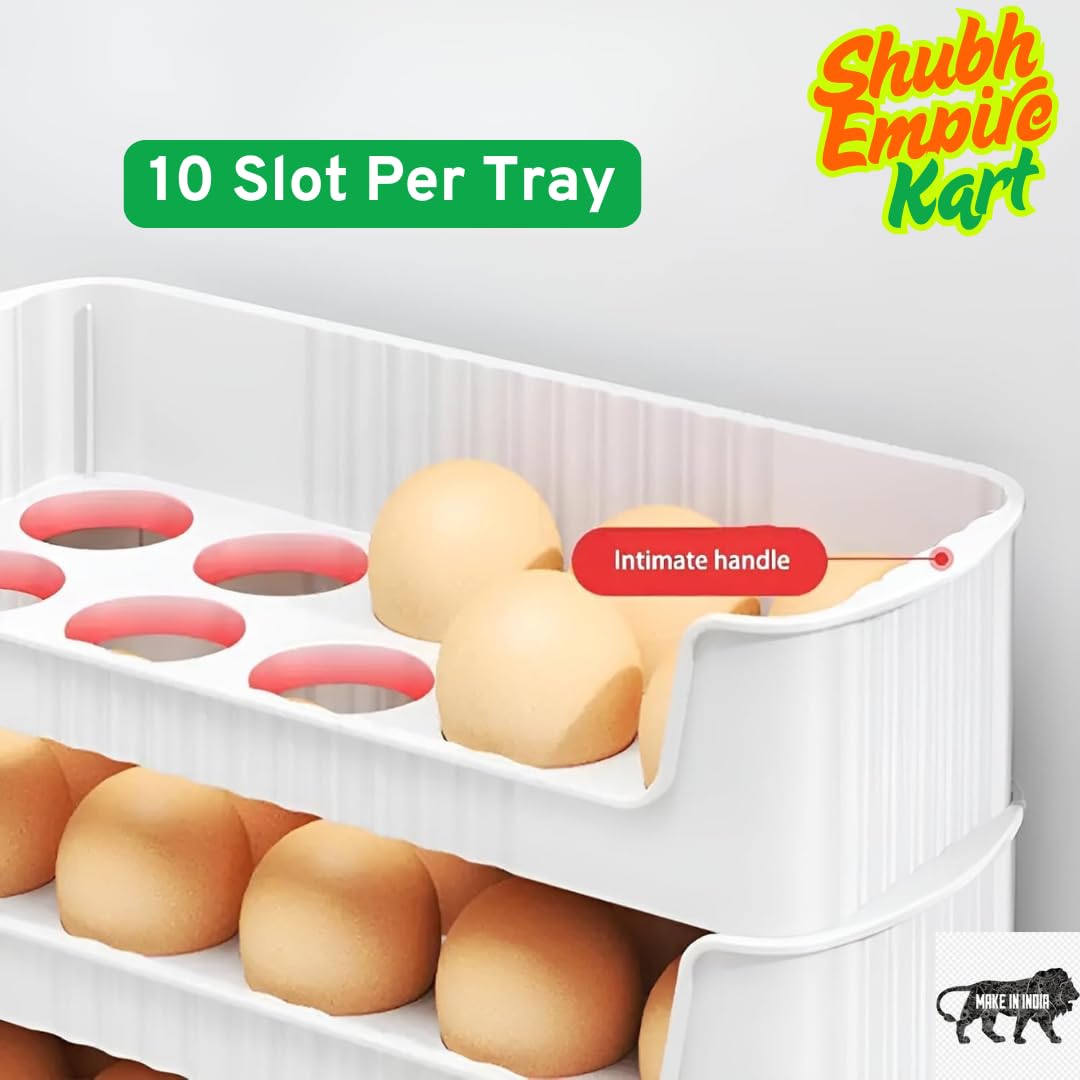 Shubh Empire Egg Holder, Eggs Storage Tray, 3 Tiers Egg Organizer For 30 Eggs Countertop, Stackable Plastic Egg Containers For Fridge, Space Saving, Easy Access, Egg Dispenser| Plastic Egg Tray 3 PCS