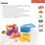 Features Detail: Talk about convenience! These Signoraware containers are microwave-safe for quick reheats and freezer-safe for longer storage. Pop them in the dishwasher for easy clean-up. The 4-sided locking lids guarantee freshness, and their square shape makes grabbing what you need a breeze. They even stack neatly to save precious space!