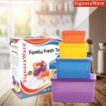 SIGNORA WARE Family Fresh Tab BPA Free Plastic Containers Set,Microwave & Freezer Safe,Airtight & Leakproof,Best For Kitchen & Outdoor Use(Multicolour,Setof4,2.5Ltr +1.2Ltr +500Ml +160Ml),Multicolor