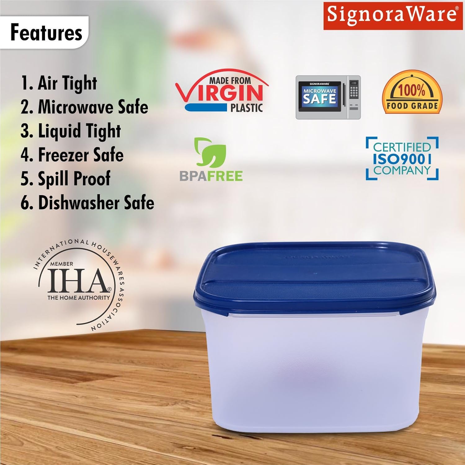 Other Details: Presented in a stylish ModBlue colour and available in multiple sizes, this Signoraware container offers a modern touch to your kitchen organization. Its combination of practicality, durability, and space-saving design makes it a valuable addition to any home.