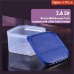 Signoraware Modular BPA Free Plastic Square Container | Dishwasher safe | Airtight & Leakproof | Kitchen & Pantry Storage | Ideal for Rice, Dal & Sugar Storage | Multipurpose ( ModBlue | 2.6 Ltr )