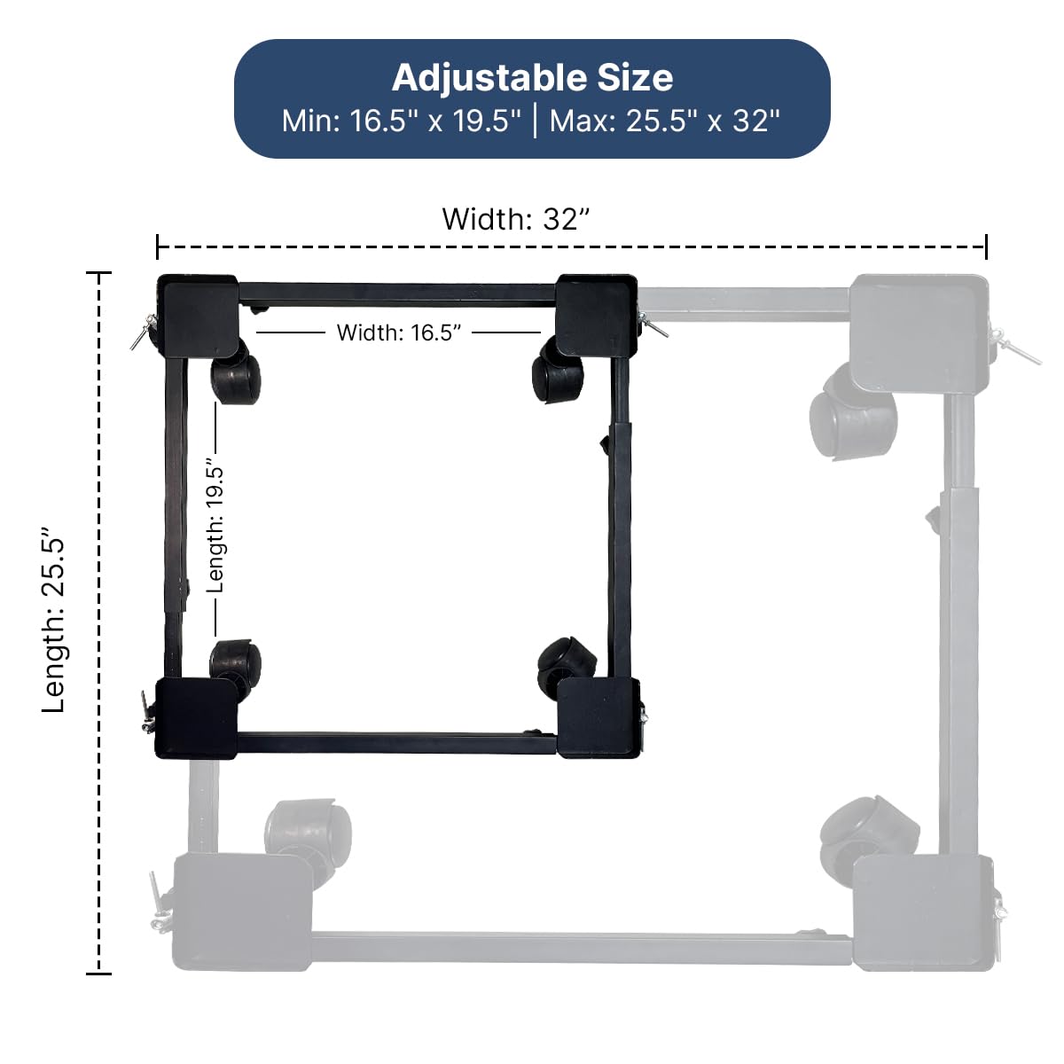 𝐀𝐝𝐣𝐮𝐬𝐭𝐚𝐛𝐥𝐞 𝐁𝐚𝐬𝐞 𝐒𝐢𝐳𝐞: The washing machine stand (Semi Automatic and Fully Automatic) size can be adjusted. Min: 16.5 inches X 19.5 inches (inner) to Max: 25.5 inches X 32 inches (inner), Height – 4 inches. Please measure your machine’s size first when you order!