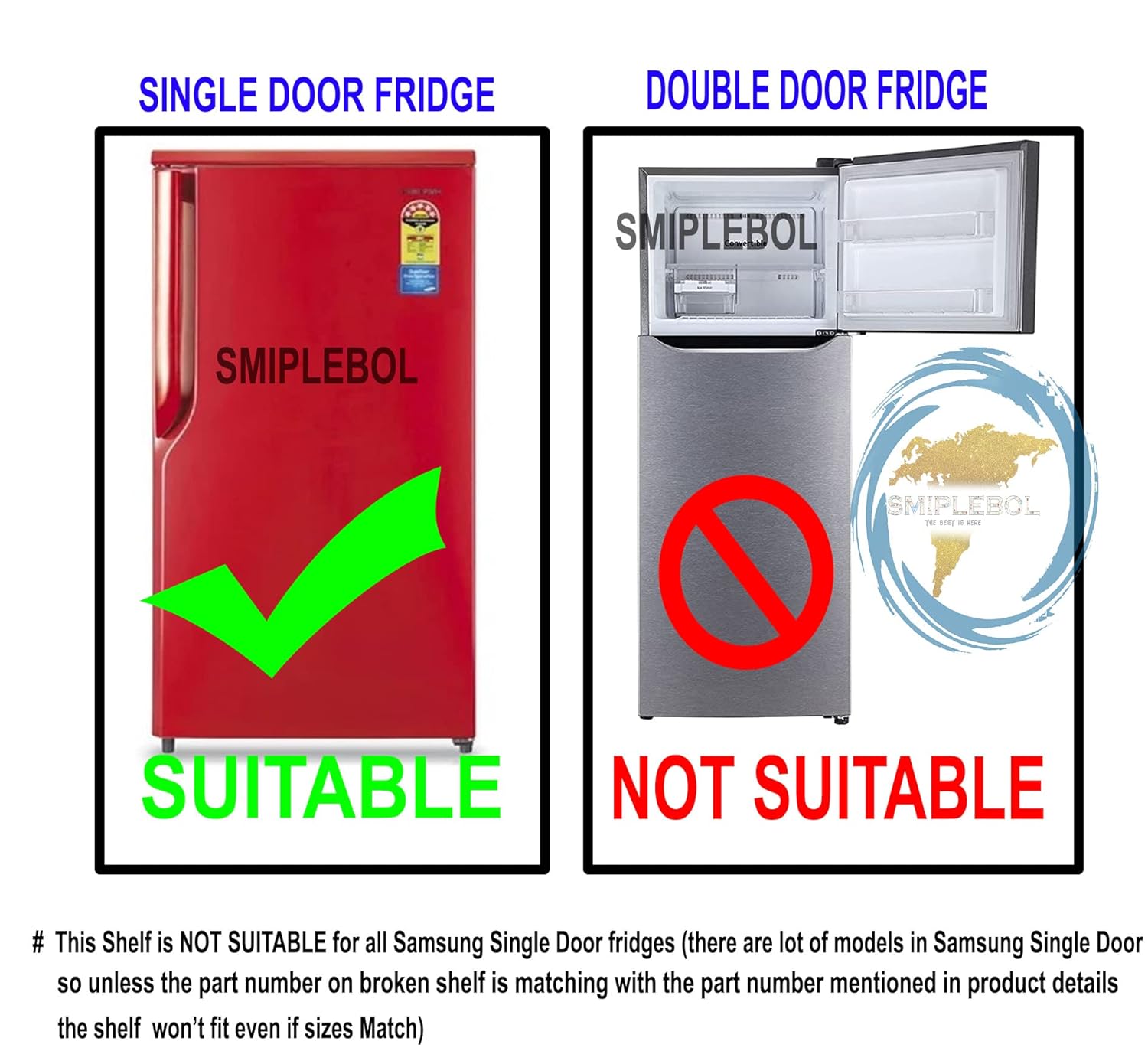 Part No: DA63-06205 (This number should match with the number on the broken part/replacing shelf only then this fits otherwise it won’t fit even if the size matches or the fridge model number matches).