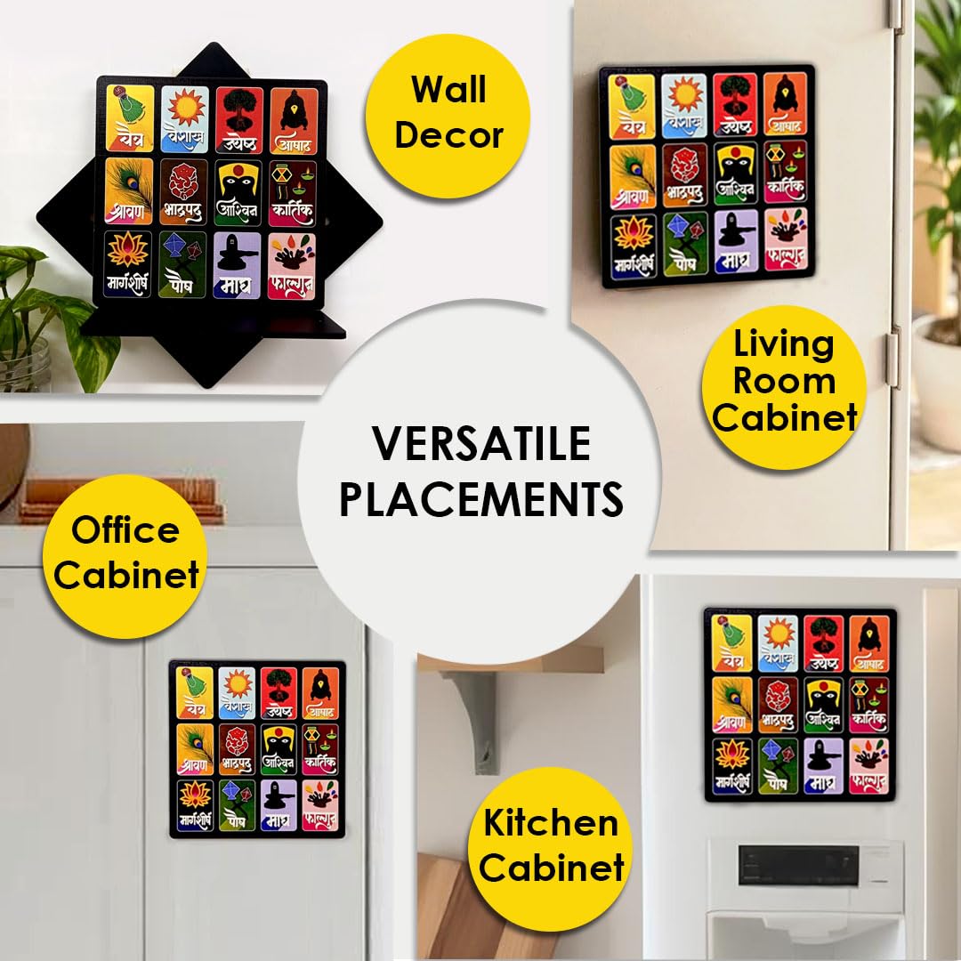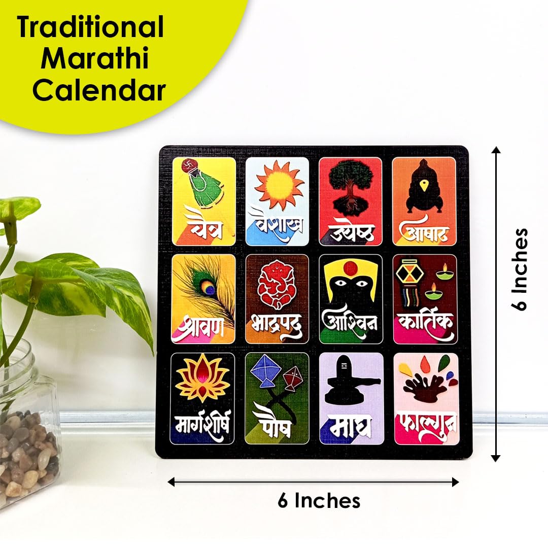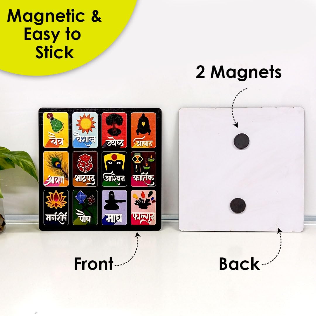 SOLOBOLO Marathi Month Calendar Fridge Magnet |Devanagari Panchang | Small Fridge Magnet| Cultural Home Kitchen Decor Item| Vastu Hindu Sanskrit Calendar | Durable Print | Size 6 Inch By 6 Inch, 1 Set