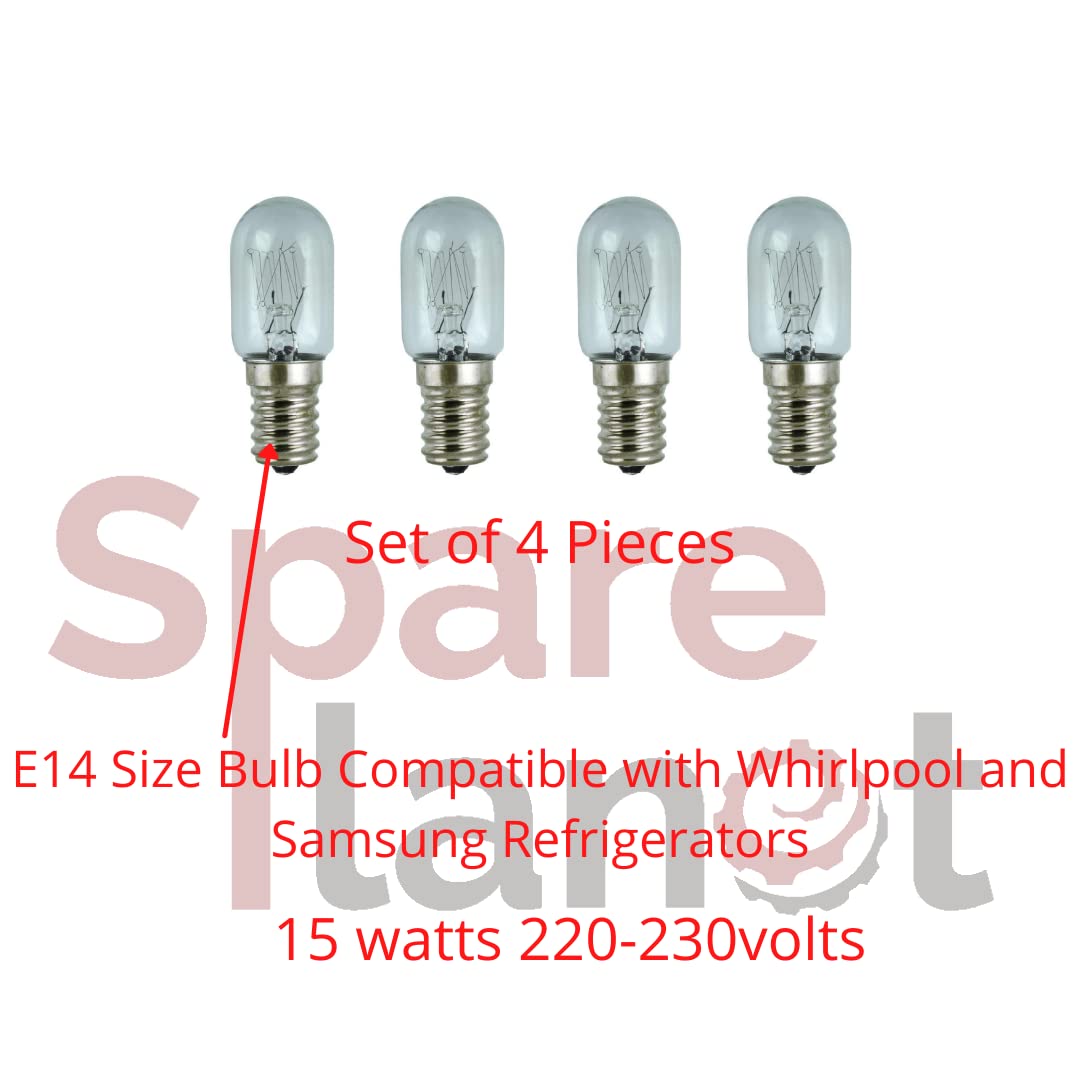 SPAREWORLD Fridge Bulb compatible with Whirlpool and Samsung refrigerator (Set of 4)