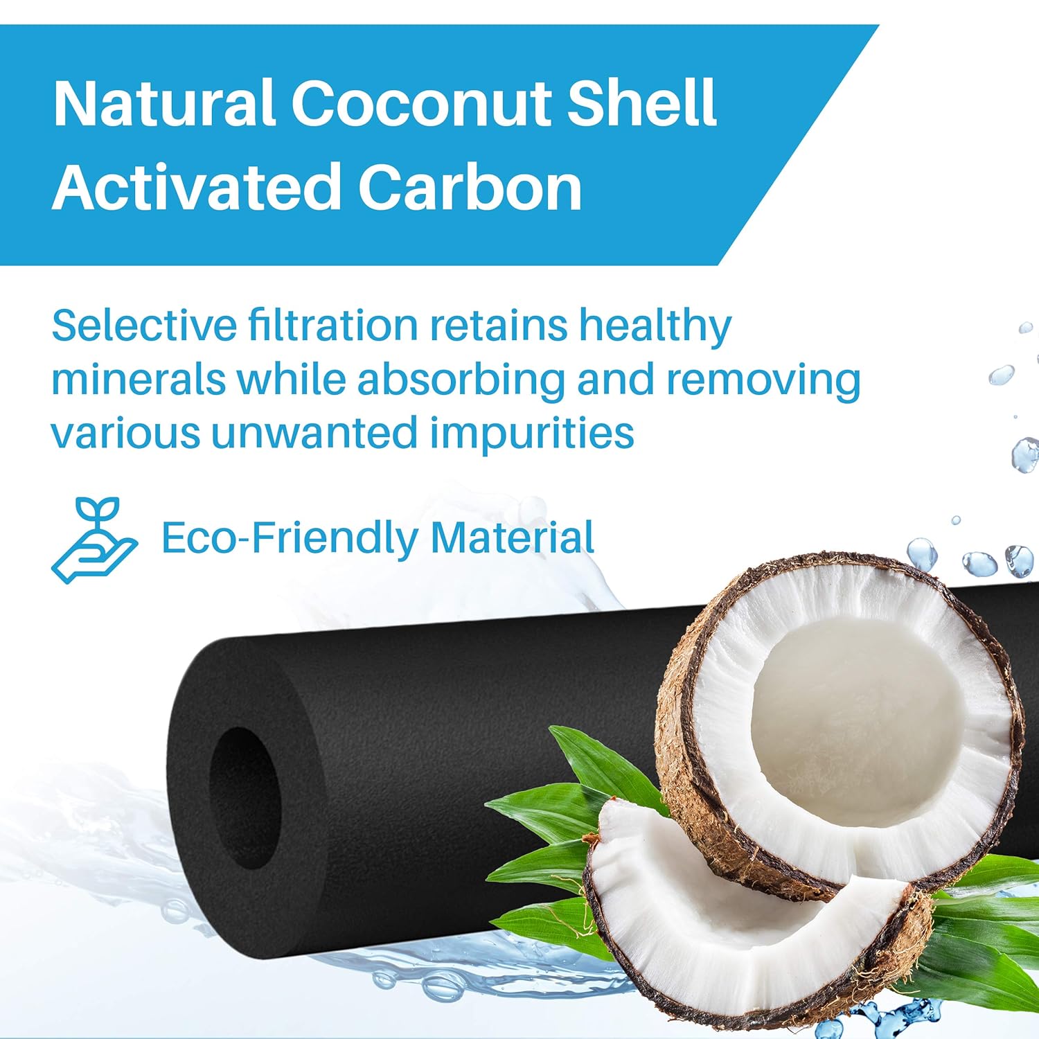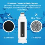 0.5 MICRON PREMIUM FILTRATION: Premium coconut shell carbon provides a 0.5 micron rating for greater filtration of contaminants than competitor filters with 1 micron ratings
