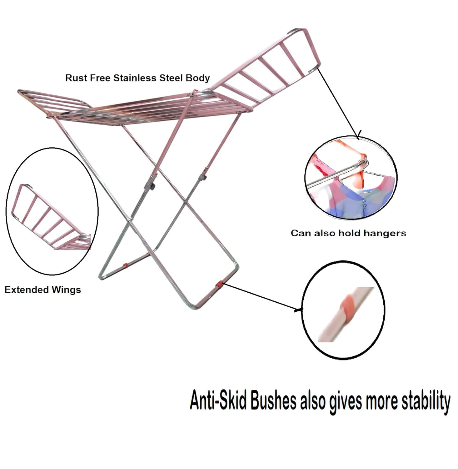 Stainless Steel Foldable Clothes Stand for Drying Double Rack Cloth Stands for Drying/Cloth Drying standSteel (Cross) (Square Pipes)