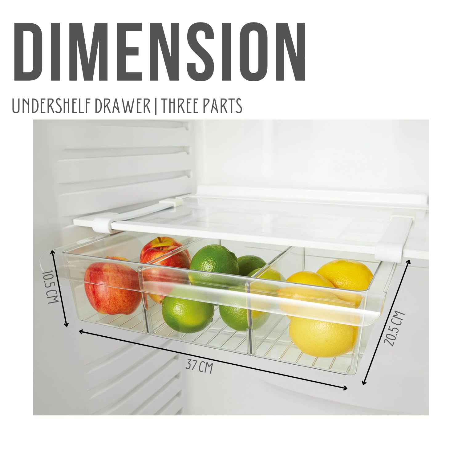 Steelo SoFresh Plastic Fridge Storage Drawer – Sliding Organizer Tray Box – Under Shelf Fridge Storage Basket – Pull Out Refrigerator Drawer for Fruits & Vegetables – Clear, With 3 Partition