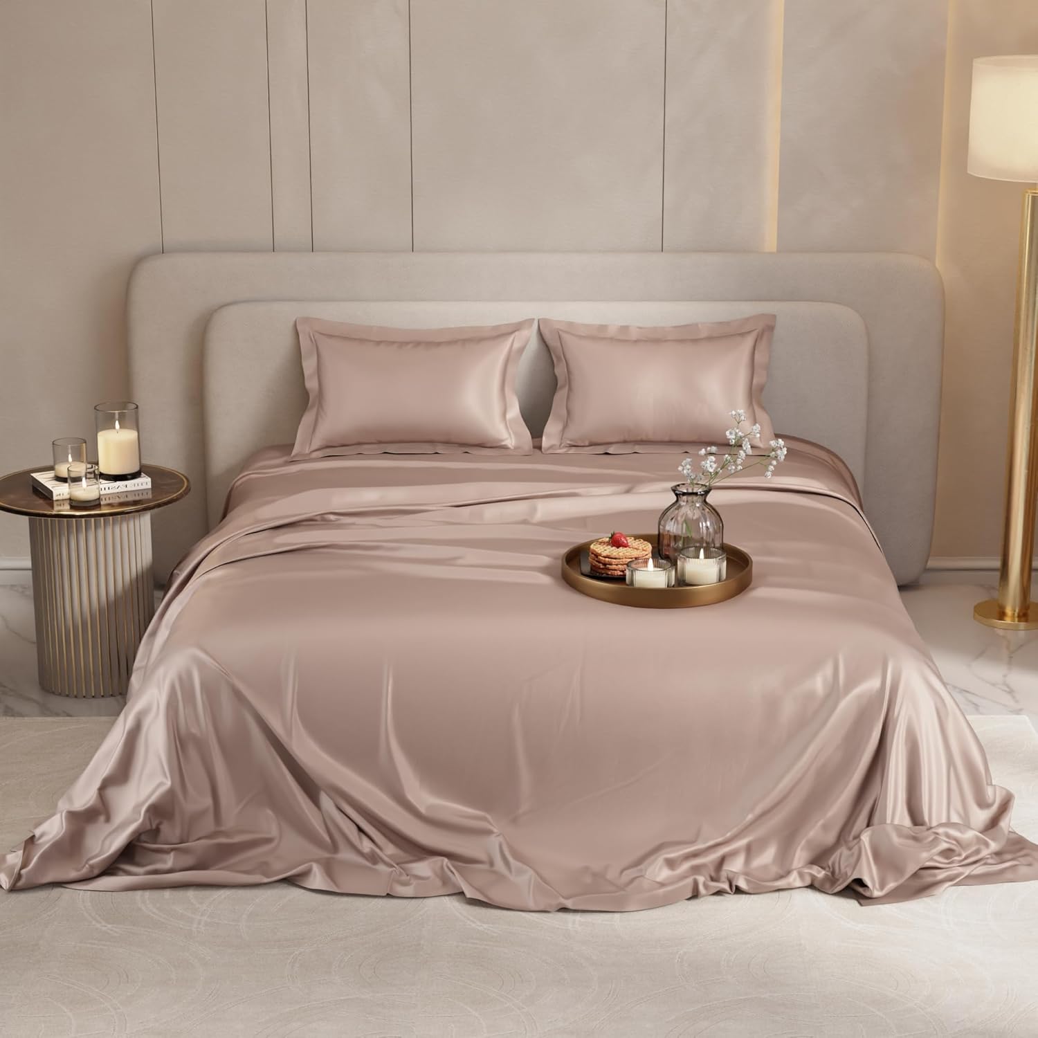 Low in Maintenance: This aesthetic bedsheet set is as practical as it is elegant, fade-resistant, machine-washable, and wrinkle-minimizing for effortless upkeep. Its long-lasting sheen and easy care make it ideal for those who love everyday luxury without the extra work