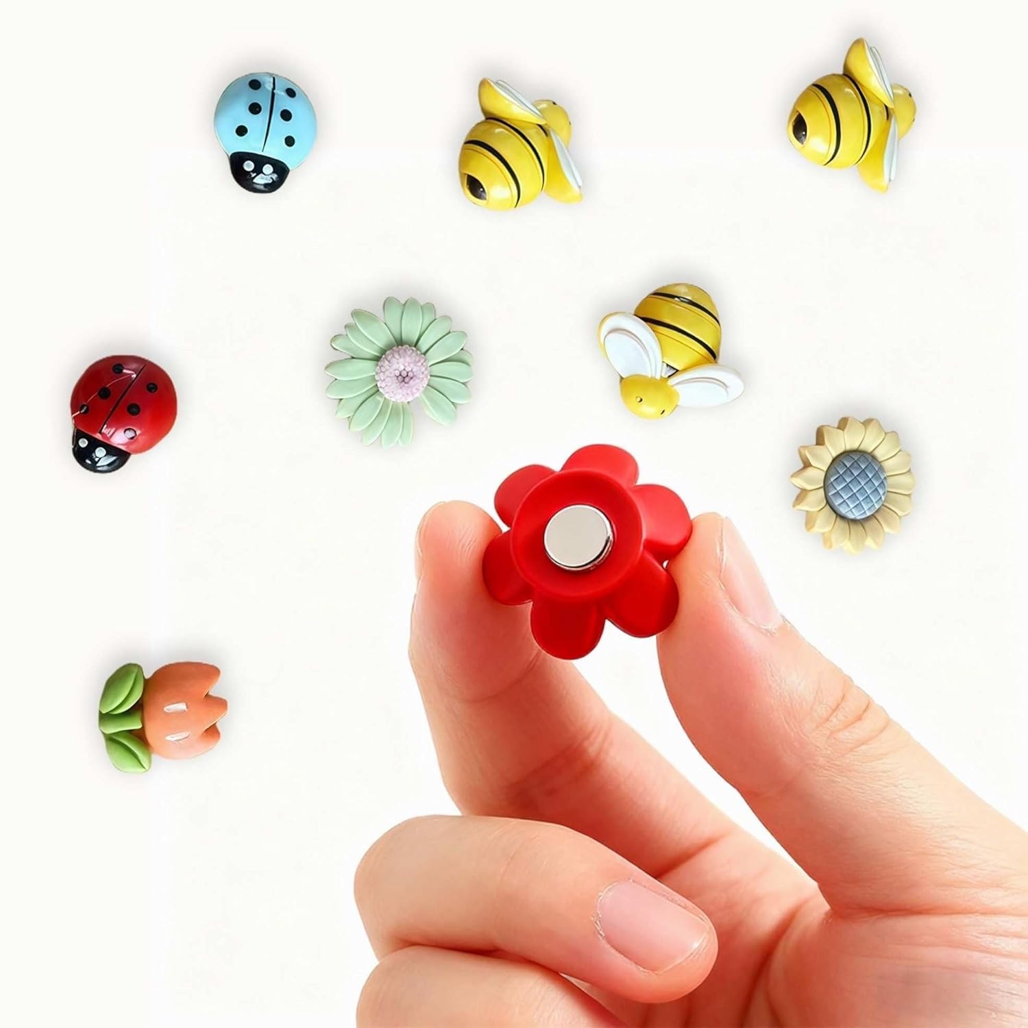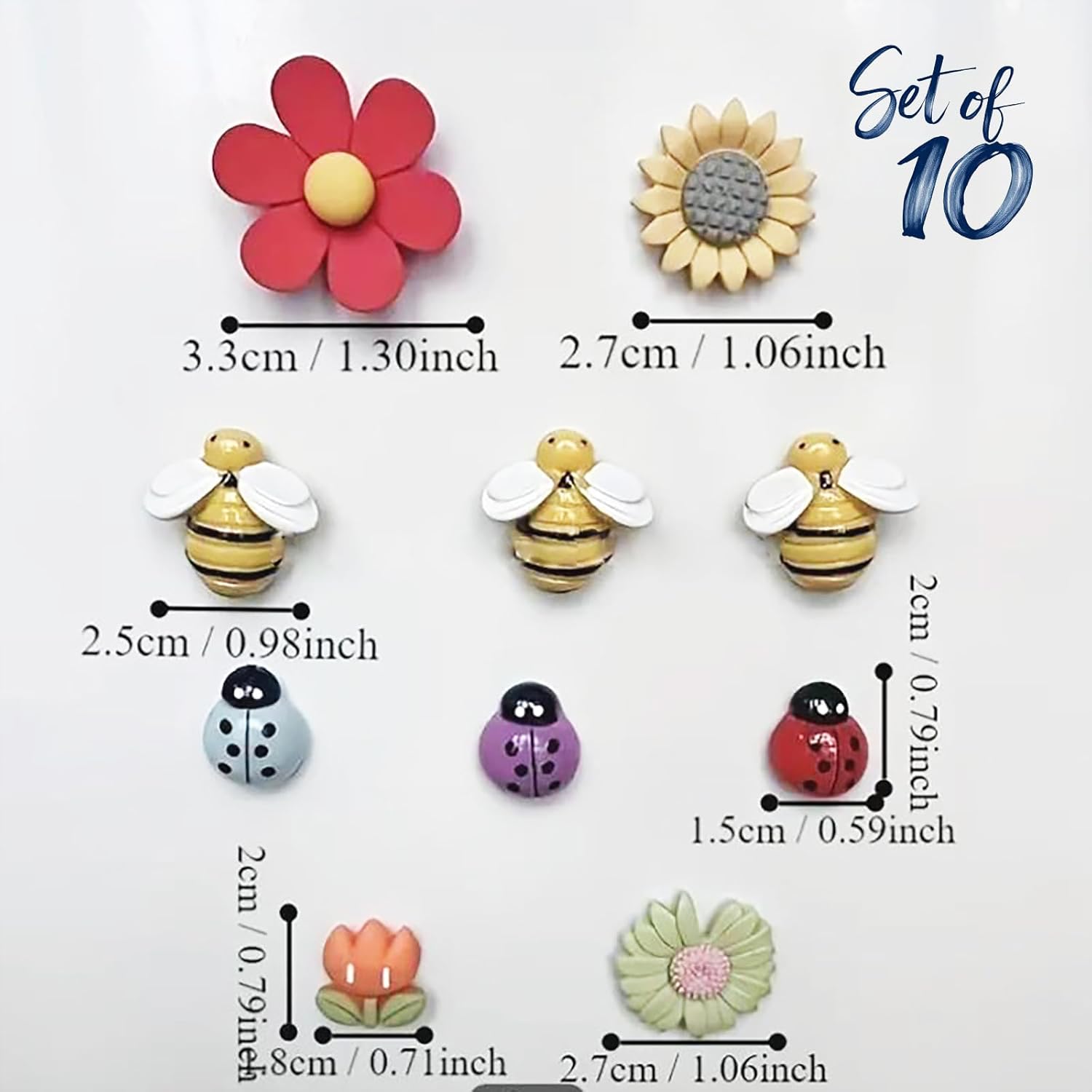 Store2508 Set of 10 Cute Flower & Bug Fridge Magnets for Home Kitchen Décor | Strong Decorative Magnets for Whiteboard Refrigerator Memo Photos | Lightweight Sunflower Daisy Bee Ladybug Magnet Set