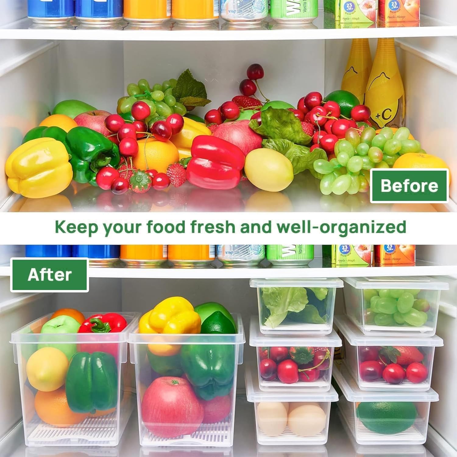 These Stackable plastic box for storage and fridge containers for storage / fridge organizers set maximizing space in your fridge. The design of fridge storage boxes for vegetables enhances kitchen organization and fridge storage containers., These fridge vegetable storage boxes for your kitchen are essential for keeping your veggies fresh. Ideal as a vegetable storage box for the refrigerator, stackable storage box and kitchen containers set , airtight container set , kitchen items for home