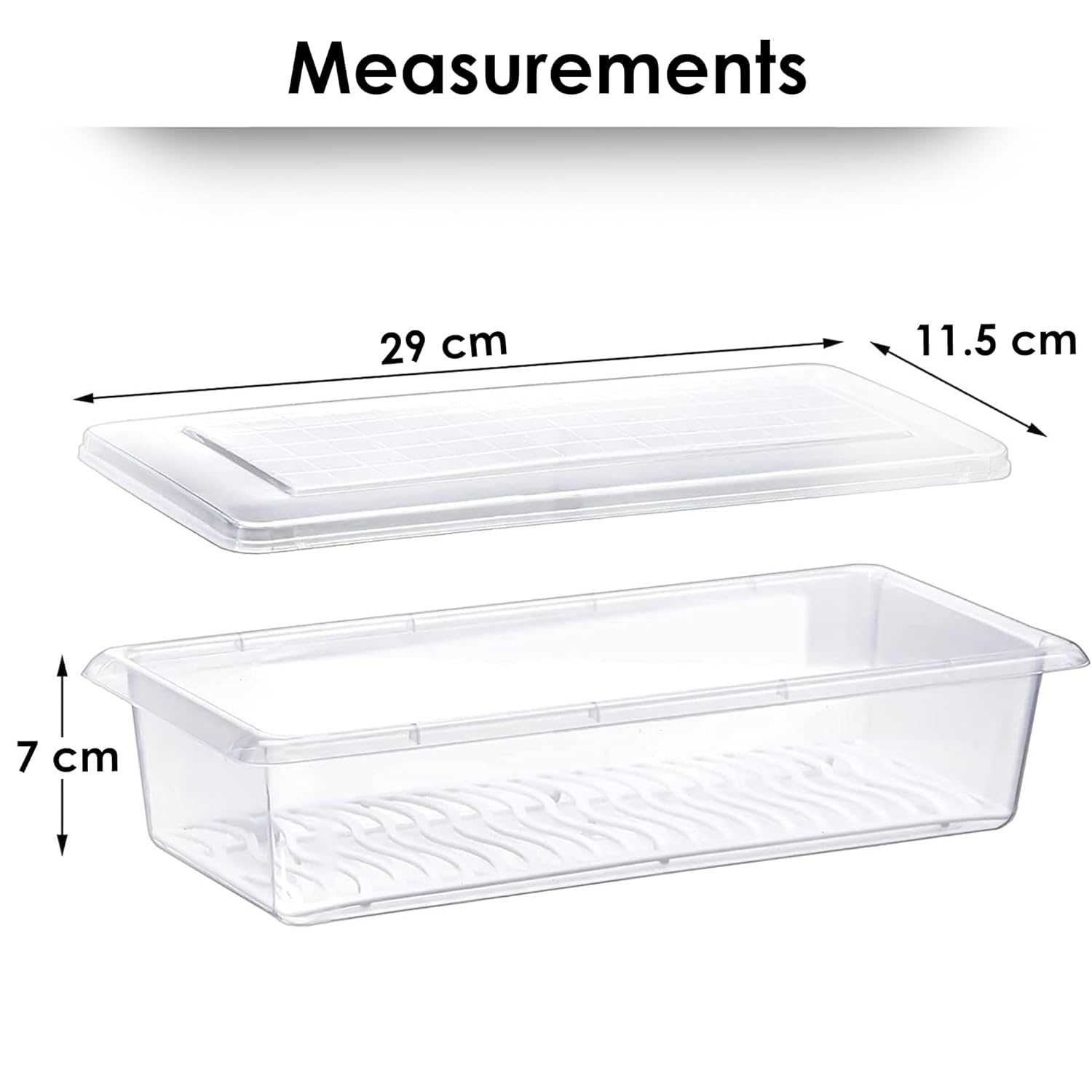 Pack of 6 kitchen accessories items for home By Story@Home , This Fridge Storage Boxes : Perfect organisers for organizing your fridge, these Fridge Storage Box for Kitchen comes with removable drain plates and lids.( Size: L 28 cm x W 11 cm X H 7 cm , Color: White ,Transparent ) Clear container for easy visibility; essential for kitchen storage set & coriander storage. Maximize space and keep your kitchen organized with kitchen organizer items, freeze organizer items and storage solutions
