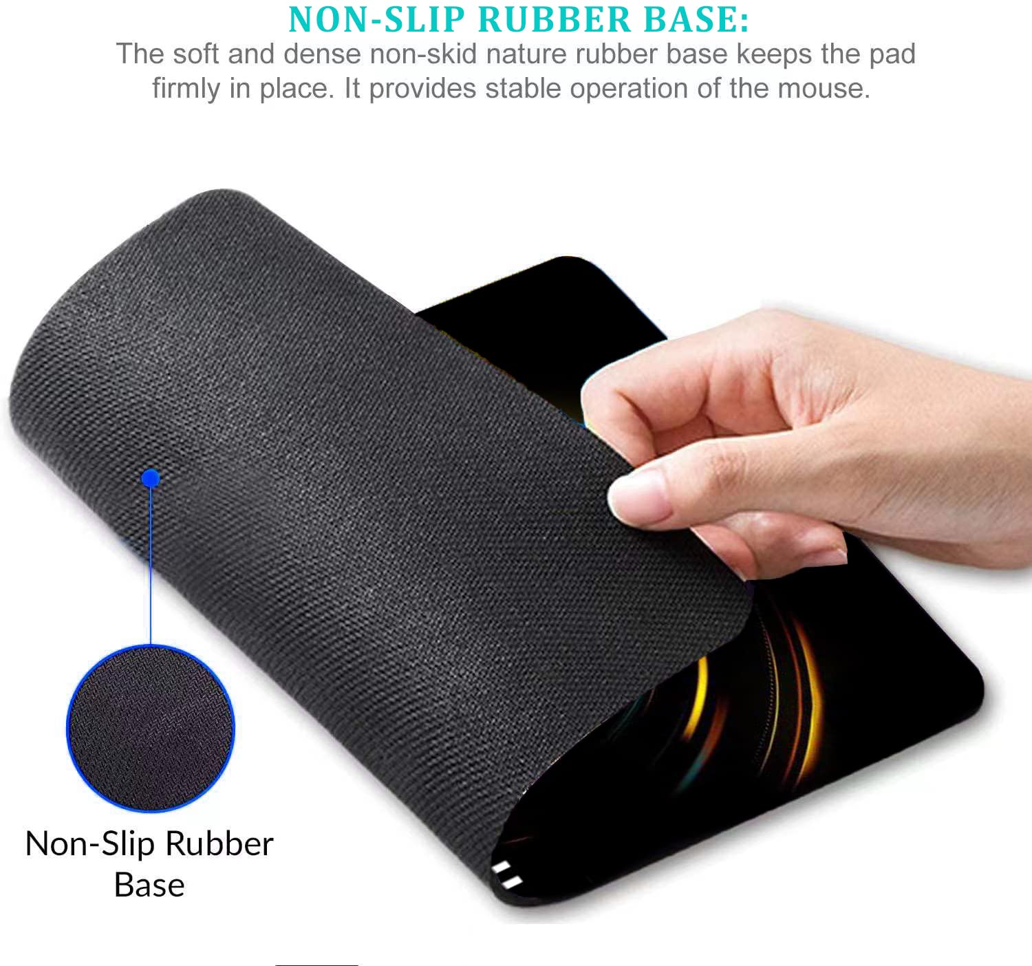 NON-SLIP RUBBER BASE – The soft and dense non-skid nature rubber base keeps the pad firmly in place. It provides stable operation of the mouse.