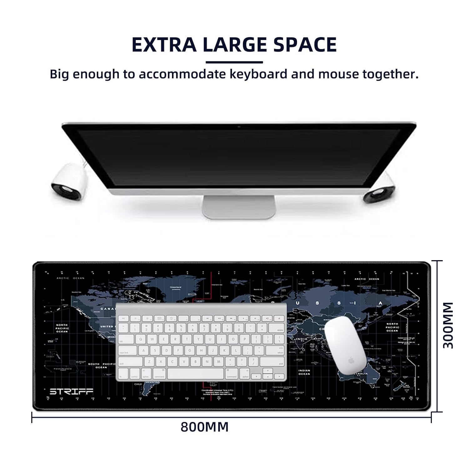 STRIFF World Map Extended Size (800 mm x 300 mm x 2 mm) Gaming Mouse Pad| Desk Mat | Stitched Edges| Non-Slip Rubber Base|Computer Laptop|Keyboard Mouse Pad for Office & Home (World Map)