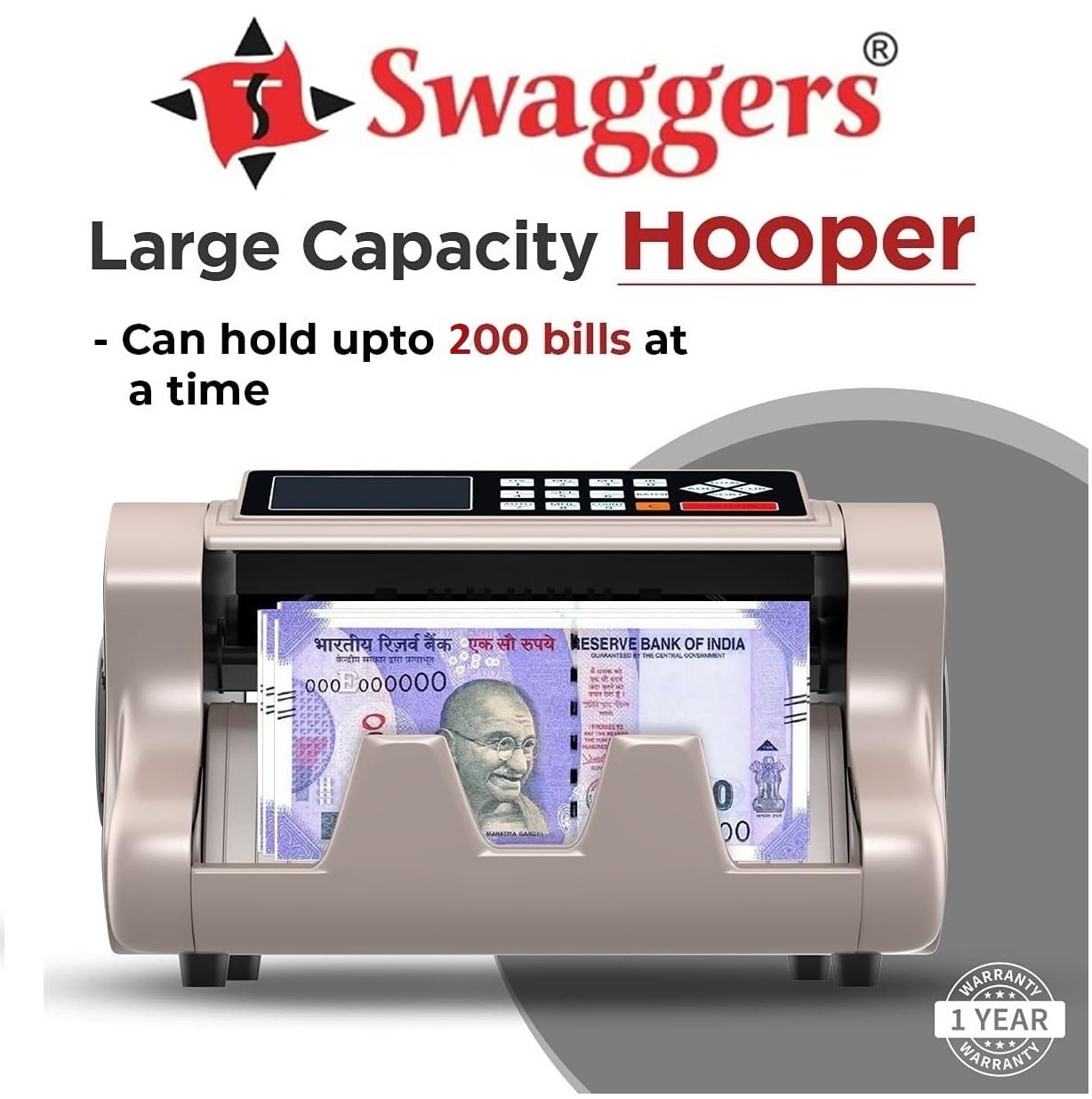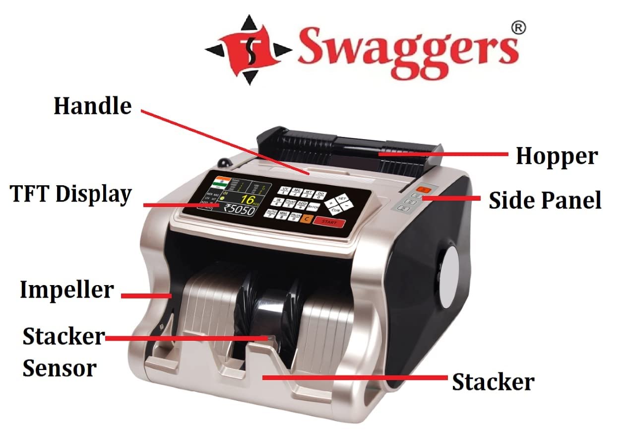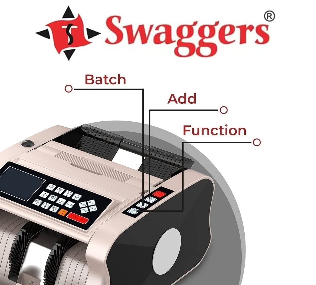 swaggers Loose Mix Note Value Counting Machine for Indian Currency(10,20,50,100,200,500,2000) with Fake Note Detector Heavy Duty Value Money Counting Machine 1 Year Warranty