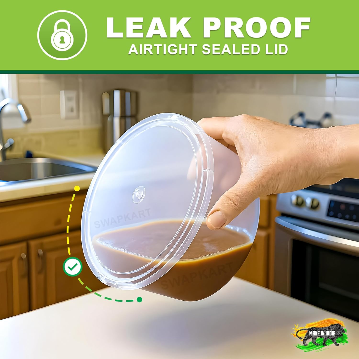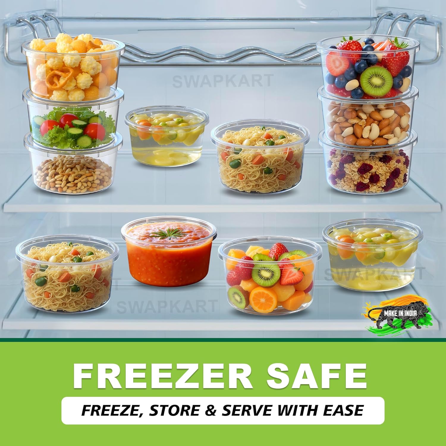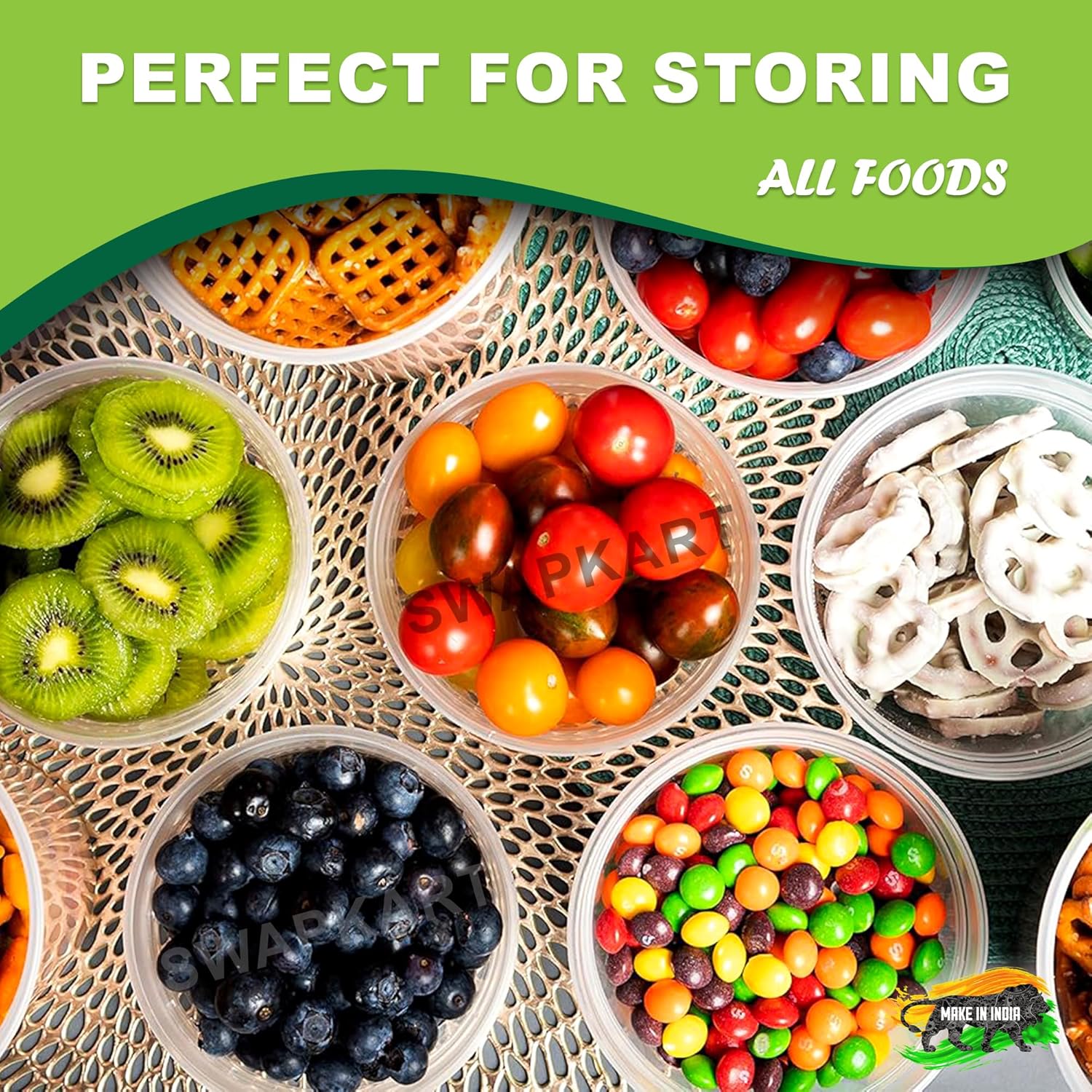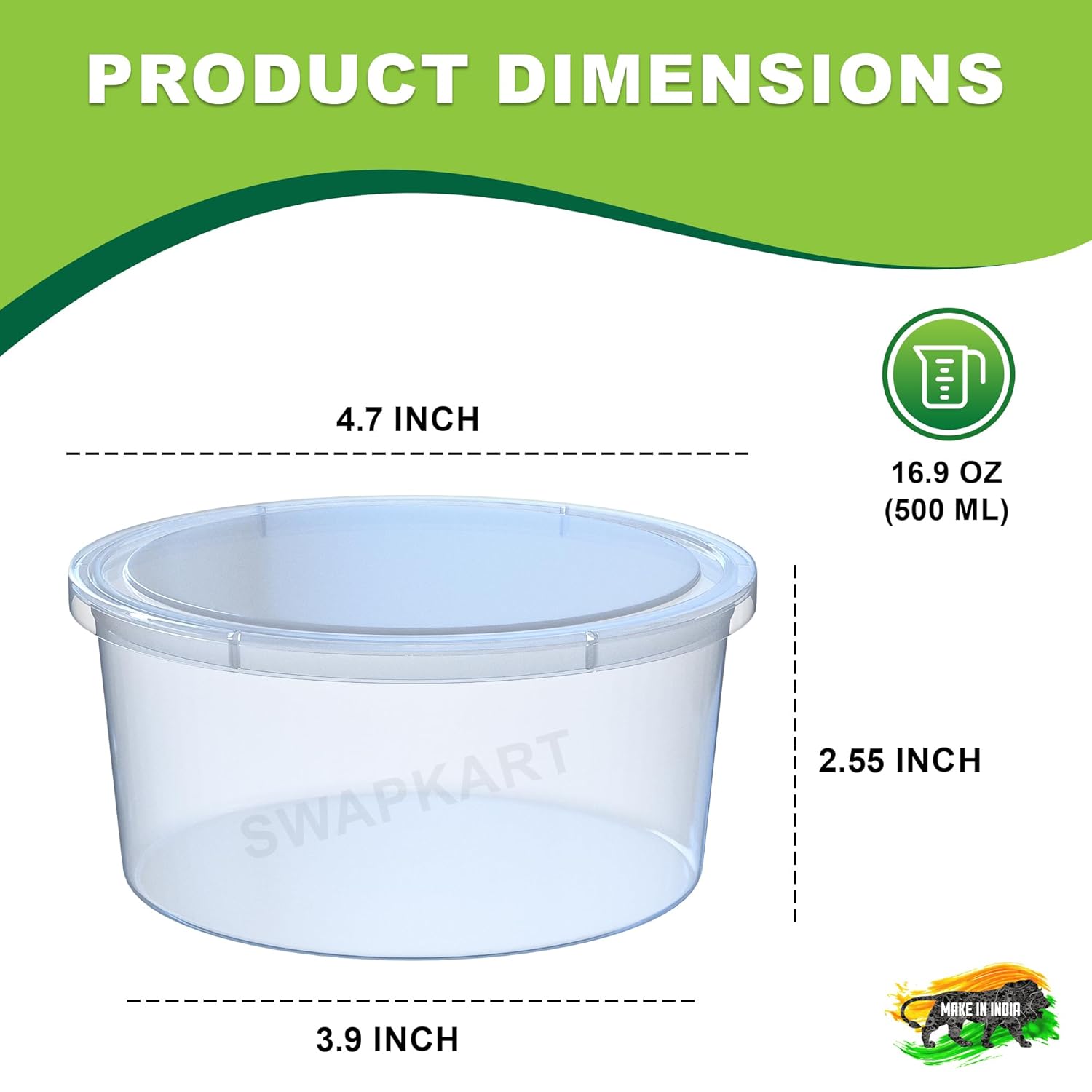 · ✅ Ideal Size for Daily Use – 500 ml Compact Storage: Each SWAPKART container offers a 500 ml capacity, perfect for storing fruits, snacks, chopped vegetables, leftovers, and sauces. Its compact size fits easily into fridge shelves, lunch bags, or picnic baskets without taking up too much space. Whether you’re meal prepping for home or packing for outdoor use, this size is perfect for portion control and clutter-free food storage.