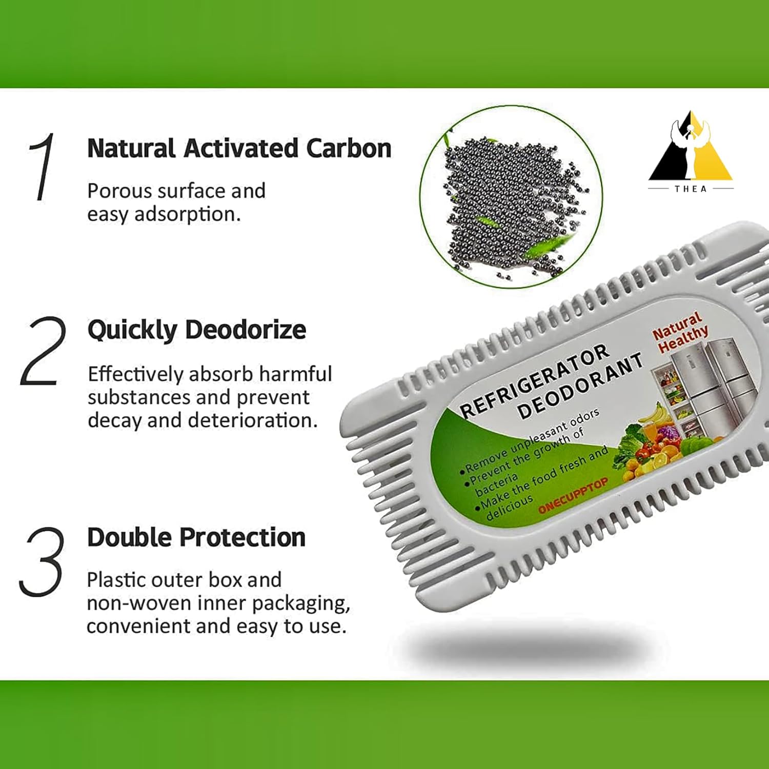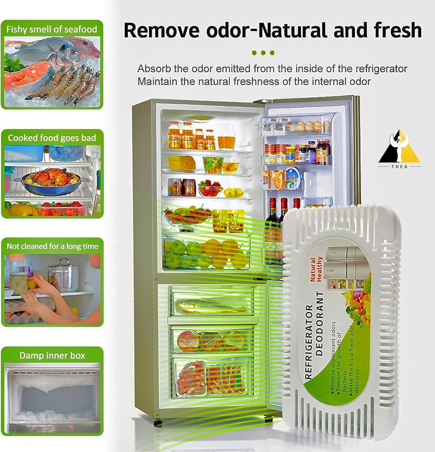 Baking soda is a poor alternative to activated charcoal odor absorbers because it spills easily making a mess in your refrigerator, bathroom, closet, and home. It also eventually crusts over when in contact with water, losing its absorbing ability pretty easily; hence needs to be replaced more often.; LONG-LASTING: THEA Fridge Odour Remover This activated charcoal odor absorber can be naturally recharged using the power of the sun. Just pull out the activated charcoal packet inside the container and layout in the sun for a few hours.