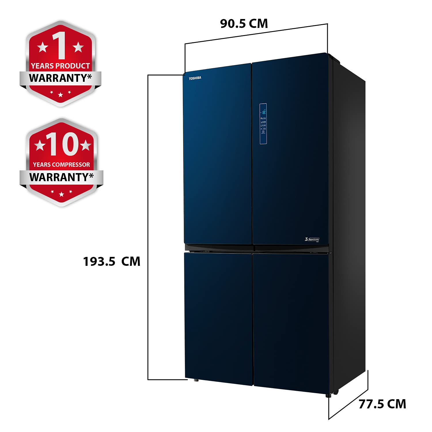 Toshiba 650 L Frost Free Inverter 4-Door Refrigerator (GR-RF646WE-PGI, Classy Blue Glass Door Finish, Futuristic Plasma + Pure Technology) (GR-RF646WE-PGI(24))