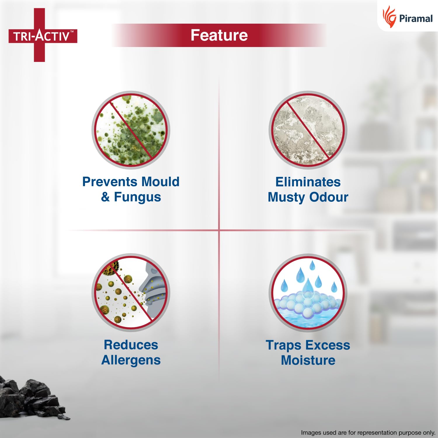 The Triactiv Moisture Absorber by Piramal is an excellent choice for keeping spaces fresh and free from excess humidity. Designed to absorb moisture effectively, it prevents mold, mildew, and musty odors, making it perfect for closets, bathrooms, and other damp areas. The trusted Piramal brand stands behind this product, ensuring quality and reliability that you can count on. The compact design is easy to place anywhere, and it works quietly, absorbing moisture without any hassle. Overall, this product reflects Piramal’s commitment to creating solutions that enhance comfort and maintain a healthy home environment.I place one in my car and seems very useful