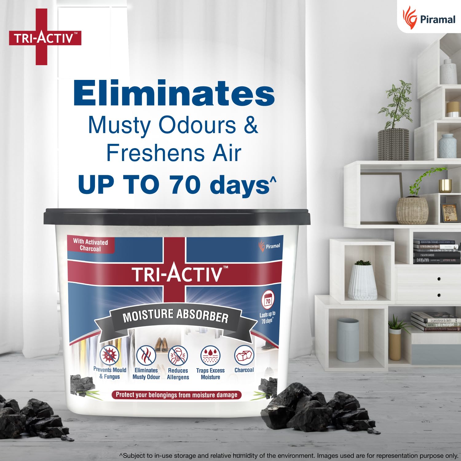 Tri-Activ Moisture Absorber | Absorbs upto 600ml Each|Pack of 2 | Dehumidifier for Room Moisture | Air Freshener & Humidity Absorber for Wardrobe, Toilet & Car | Prevents Mould, Fungus, Odour|Charcoal