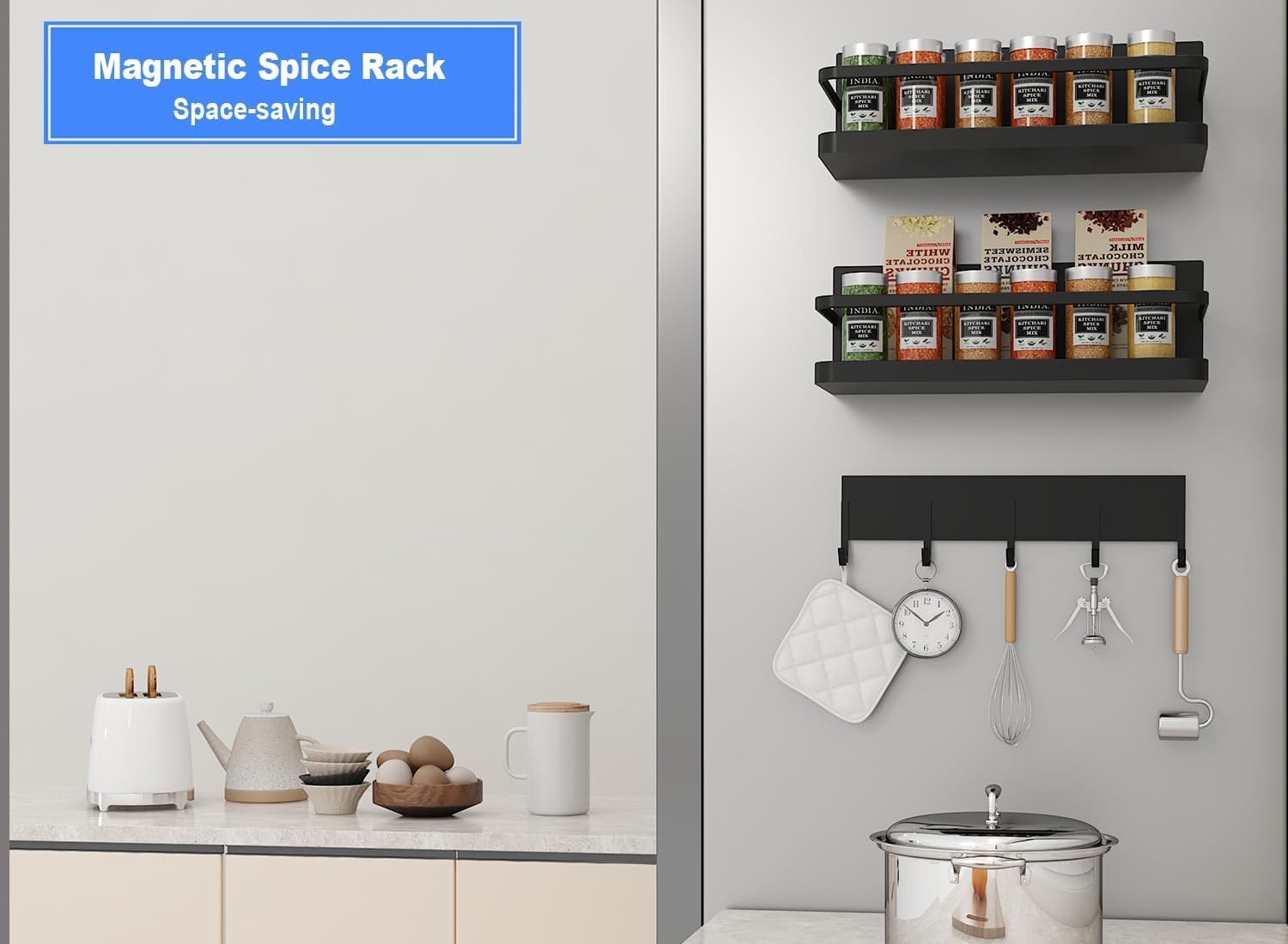 VERSATILE FRIDGE DECORATION ITEMS Add a touch of style to your kitchen with our functional fridge decoration items that double as a magnetic organiser for fridge. Perfect for storing condiments and spices, this item transforms your fridge into a chic and organized space.