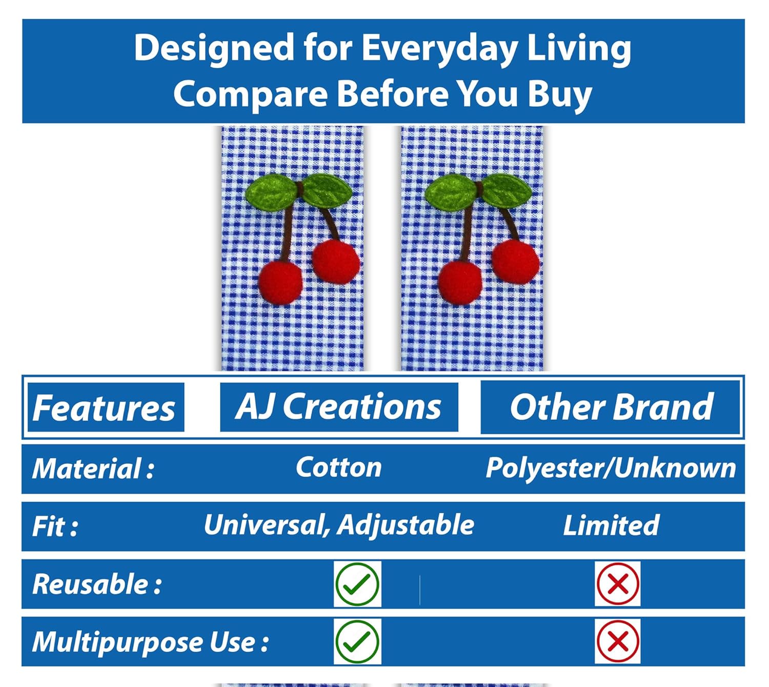 Keep your appliances clean and stylish with AJ Creations Multipurpose 3-Layer Cotton Handle Covers. Designed for daily use, these soft and breathable handle protectors are perfect for refrigerator doors, ovens, microwaves, and even car seat belts. Made from premium-quality cotton, each cover features a three-layer design that offers durability, comfort, and maximum protection from dust, stains, smudges, and wear. Thanks to the adjustable Velcro straps, they’re easy to install and fit most standard handles, whether it’s a single door fridge or double door. These covers are not only functional but also add an elegant touch to your home or car. Washable and reusable, they’re an eco-friendly solution to maintain hygiene in your kitchen or vehicle.