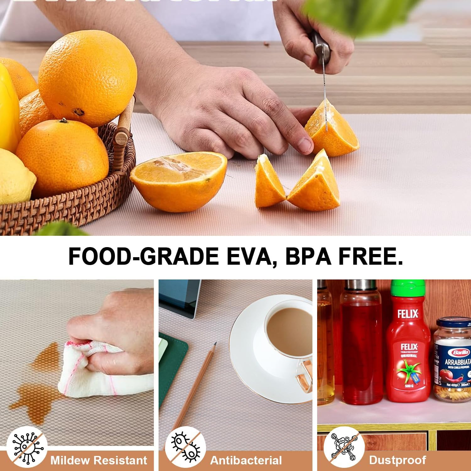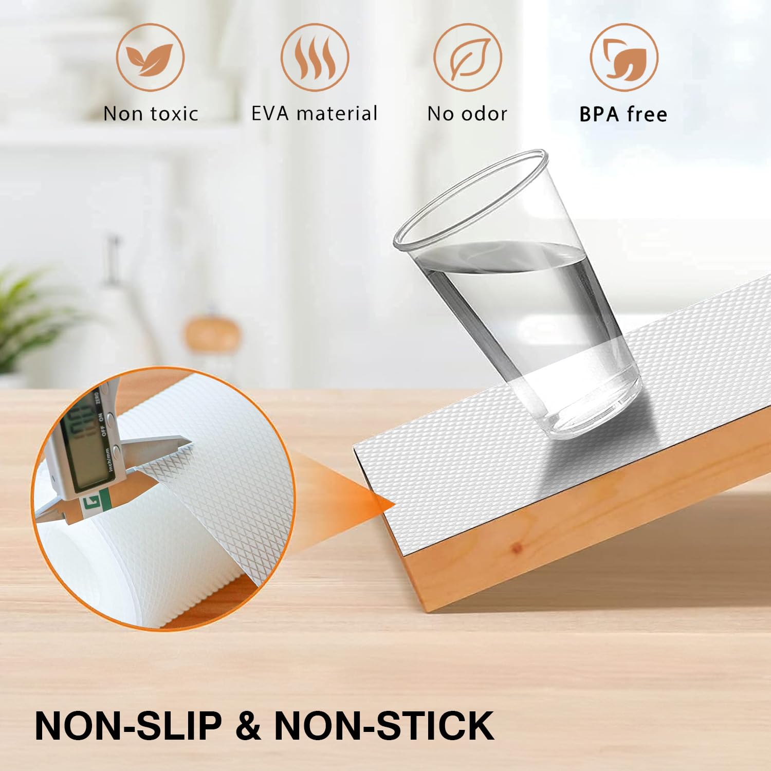 ANTI-SLIP SURFACE: With its anti-slip properties, this kitchen mats for shelf waterproof ensures a secure grip, preventing items from sliding or shifting in your kitchen cabinets, cupboards, and placemats . Keep your belongings organized and protected with kitchen placemats mats waterproof. Perfect anti skid mat for kitchen shelves
