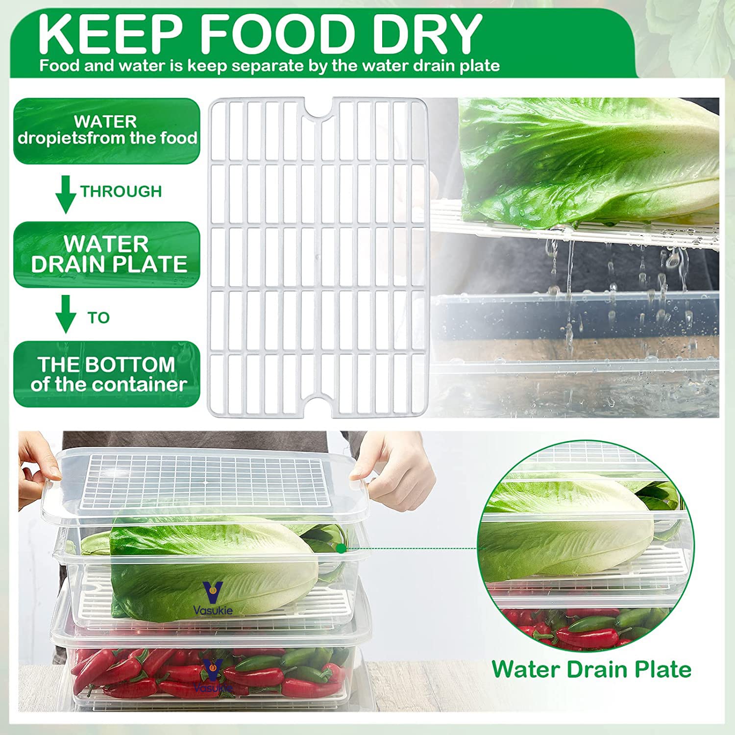 Water Filter Tray: The fridge storage containers with removable drain plate, keep fruits, vegetables, meat, fish out of the drippings. Effective to prevent bacterial growth.
