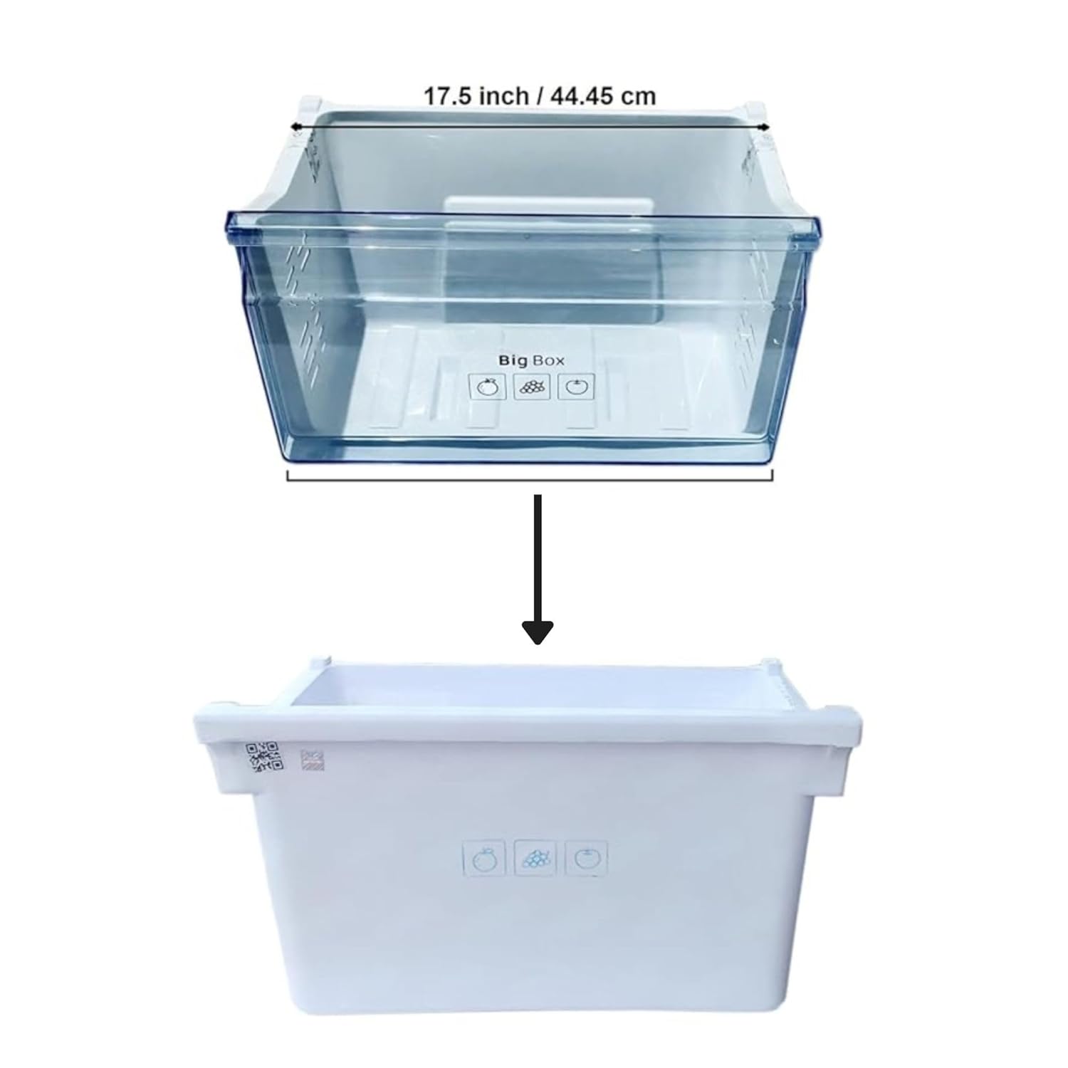 Vegetable Basket Compatible with Samsung Double Door Refrigerator | Compatible with 253 Litre Fridges | Full Plastic Storage Box | White Replacement Bin | Pack of 1 (DA61-08973A)