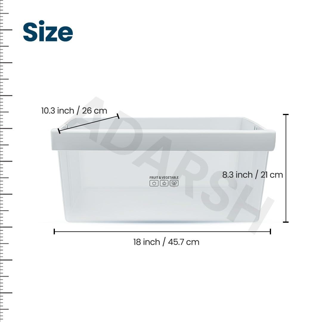 Dimension: 26 x 47 x 21.6 Centimeters. Not suitable for all LGsingle door fridge models. Material: Plastic. Before placing the order, if you would like to confirm fitting/assistance in choosing the right spare part for your fridge/refrigerator so please WhatsApp us or call us at 7503747738, 9310930856.