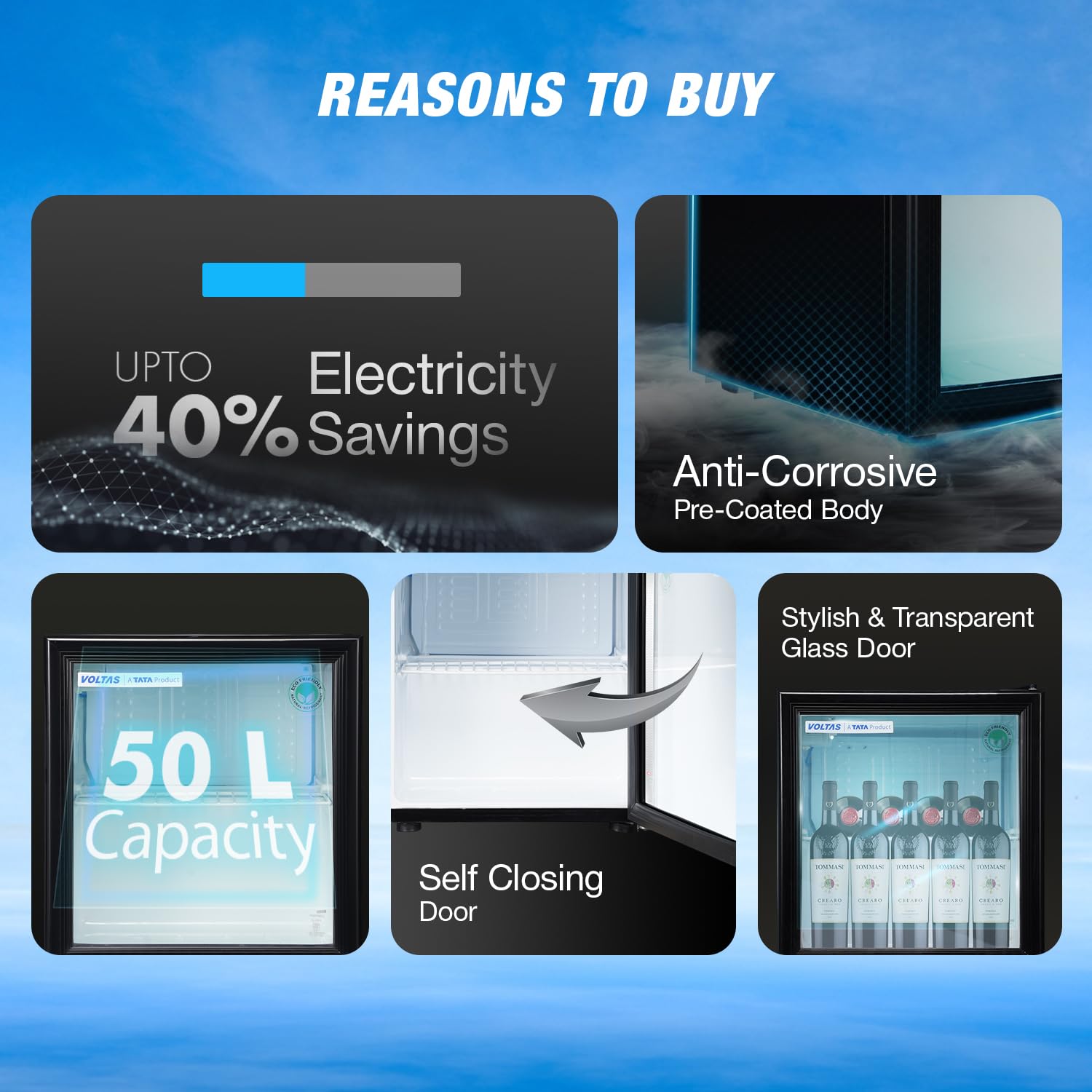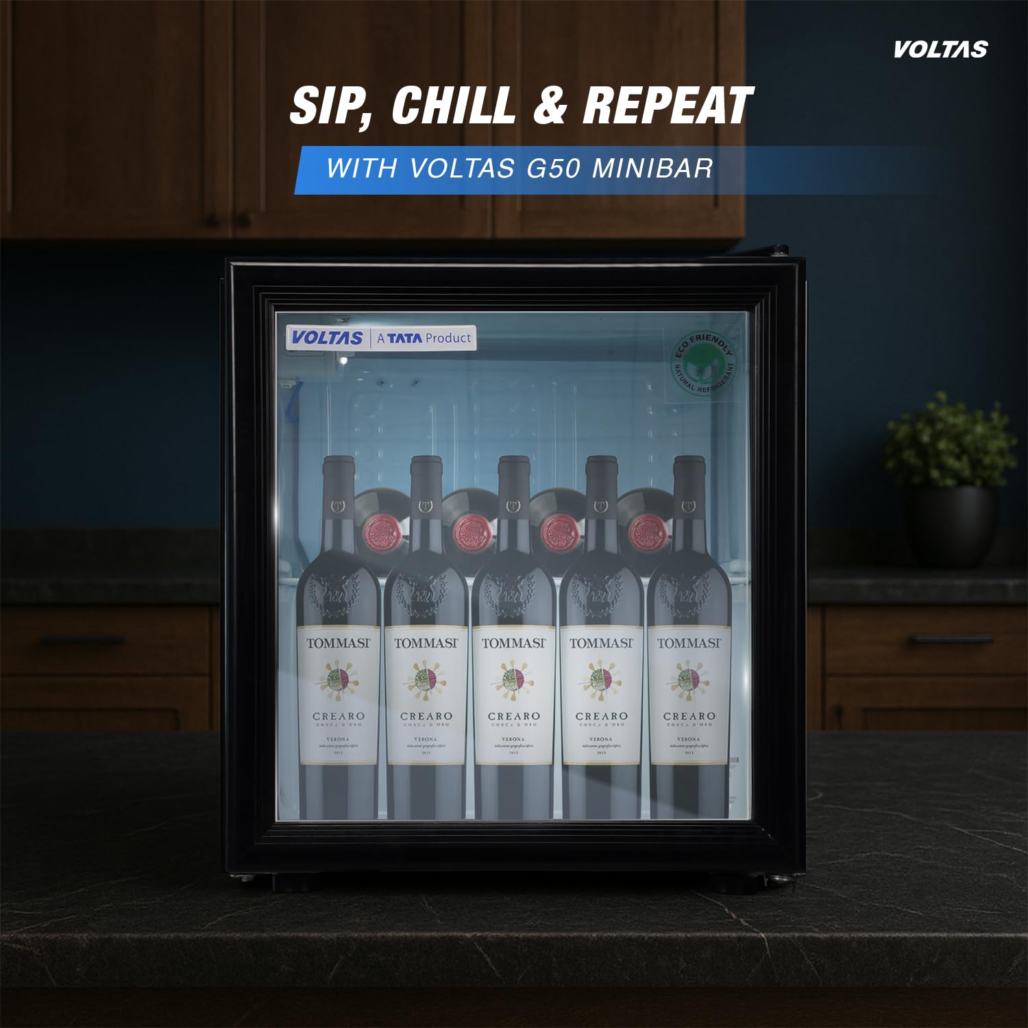 Voltas 50 Litres, Counter Top Glass Door Mini Bar/Visi Cooler, With Antibacterial Gasket (VC GT 50, Black)