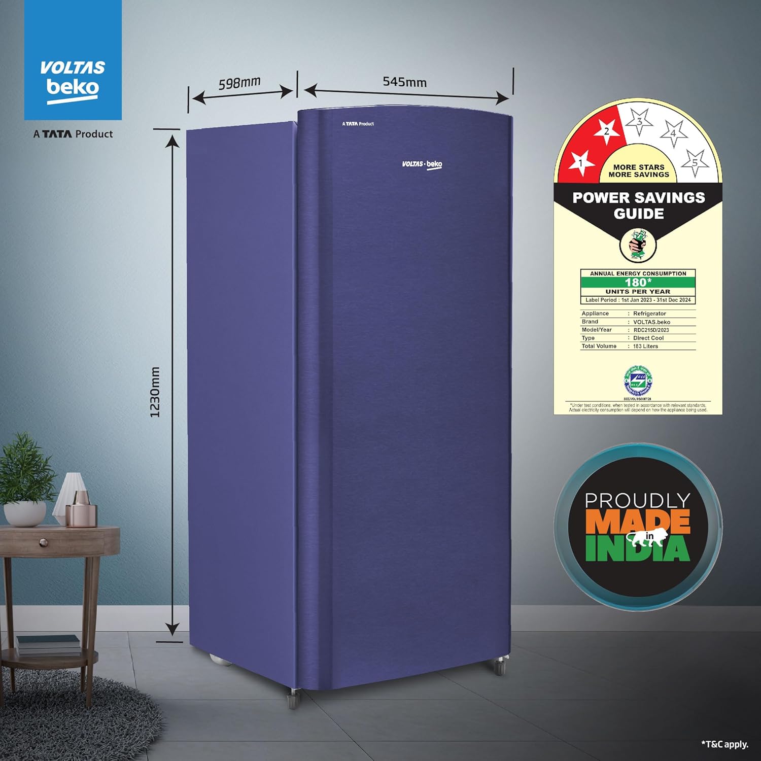 2 Star: Best in class efficiency; Annual Energy Consumption: 180 KWH (T&C apply, pls refer BEE lebel)