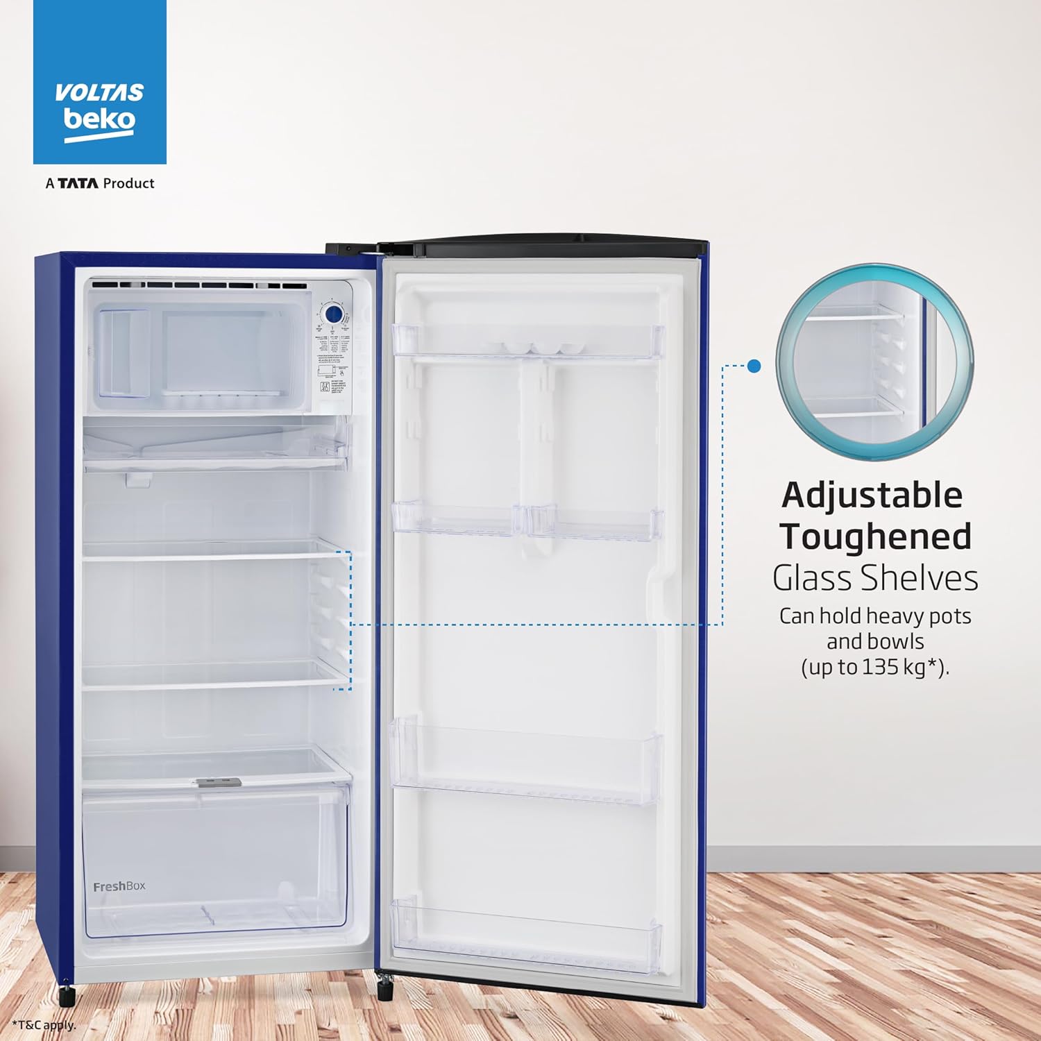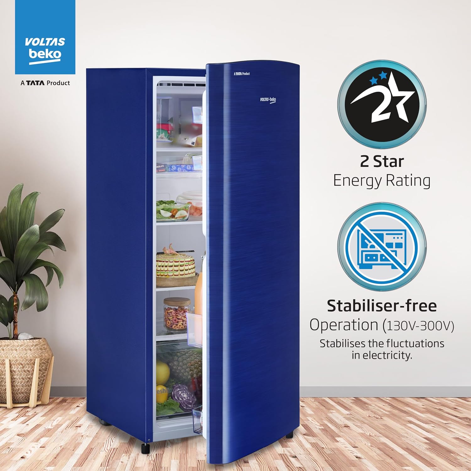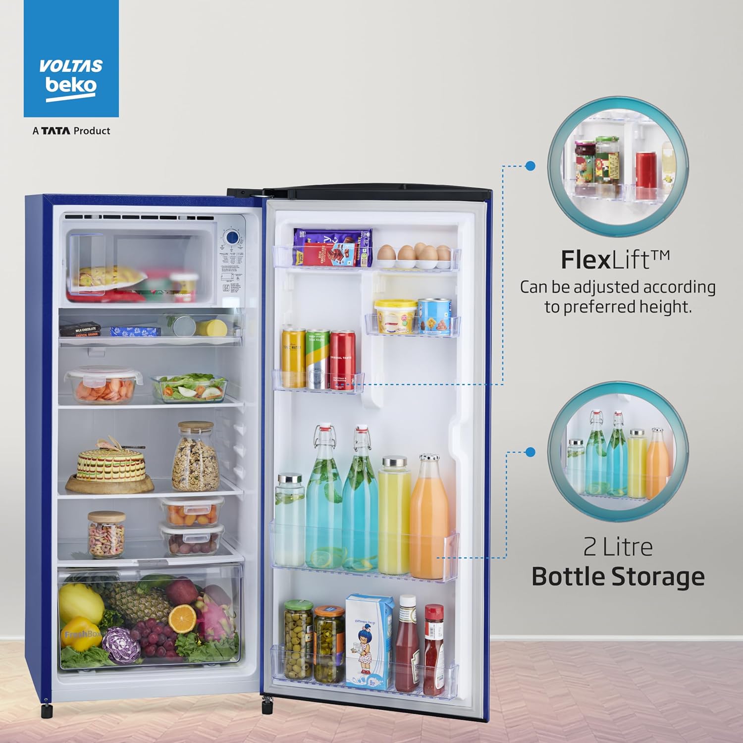 Voltas Beko, A Tata Product 183 L 2 Star Direct Cool Single Door Refrigerator (RDC215D/S0XER0M0000GO, Hairline Blue, With Fresh Box Technology and Chiller Zone, Stella blue)