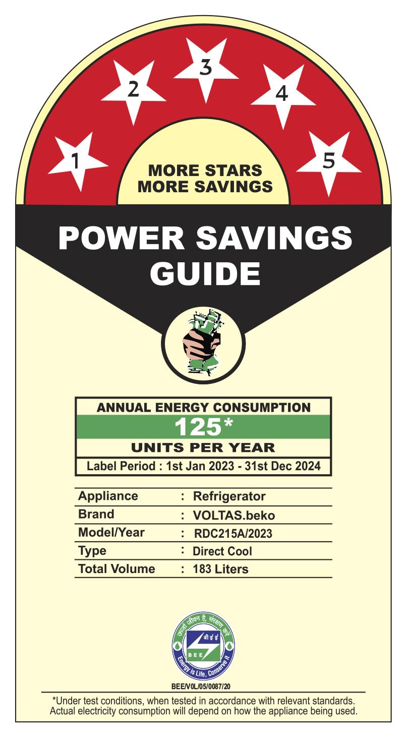 Voltas Beko, A Tata Product 183 L 5 Star Direct Cool Single Door Refrigerator (, RDC215A / W0VWR0M0B00GO, Vivi Wine, Base Drawer)