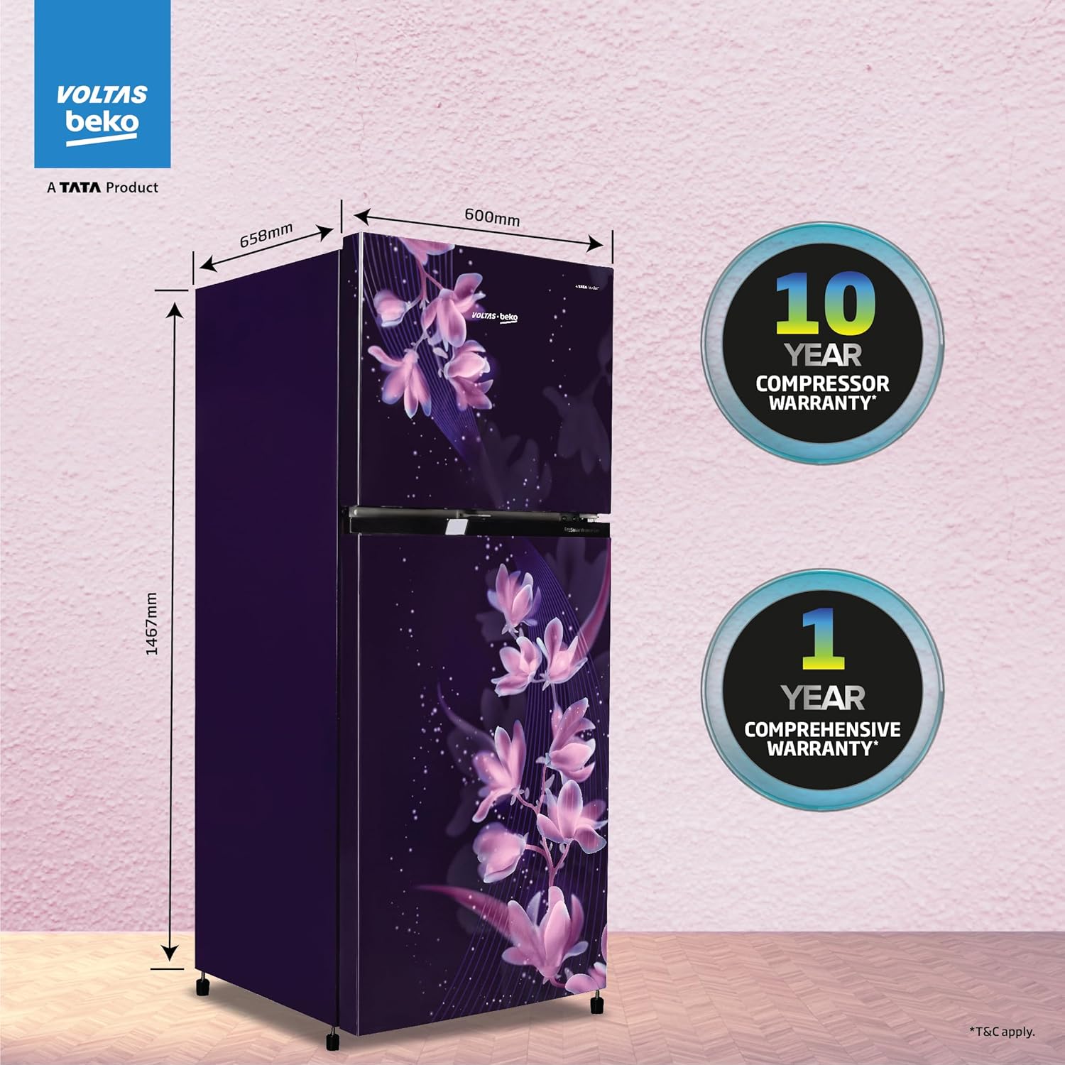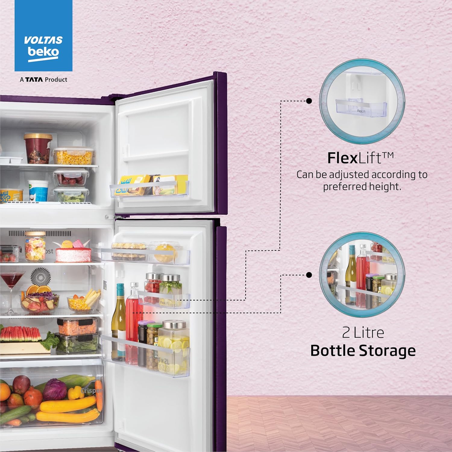 Voltas Beko ‘A TATA Product’ 228 L 2 star Frost free Refrigerator with two separate cooling system (RFF265D/W0NPR0I0000GO, Nightangel Purple)