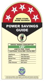 5 Star: Best in class efficiency; Annual Energy Consumption: 125 KWH (T&C apply, pls refer BEE lebel)
