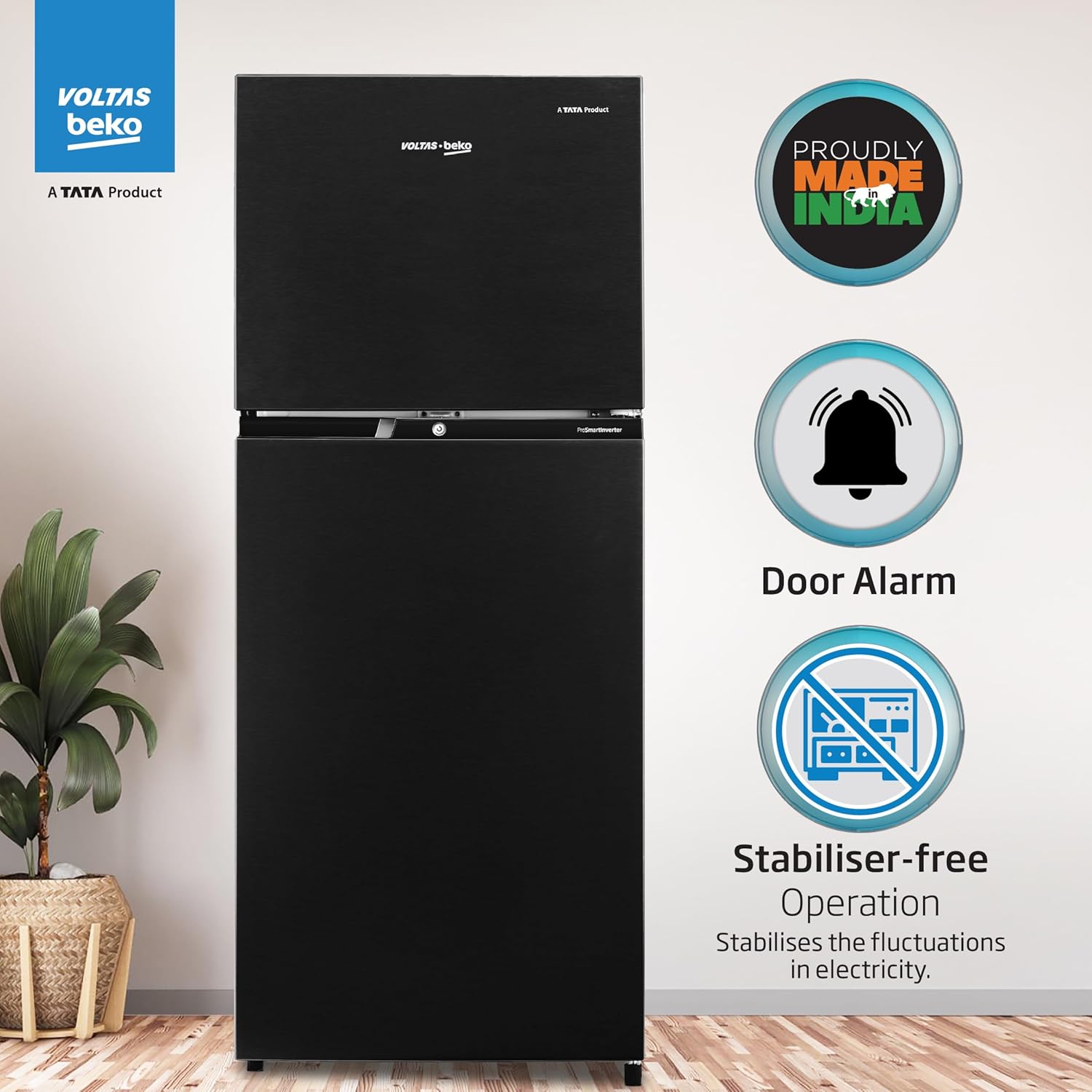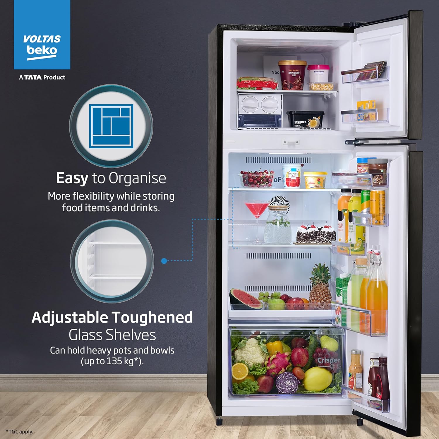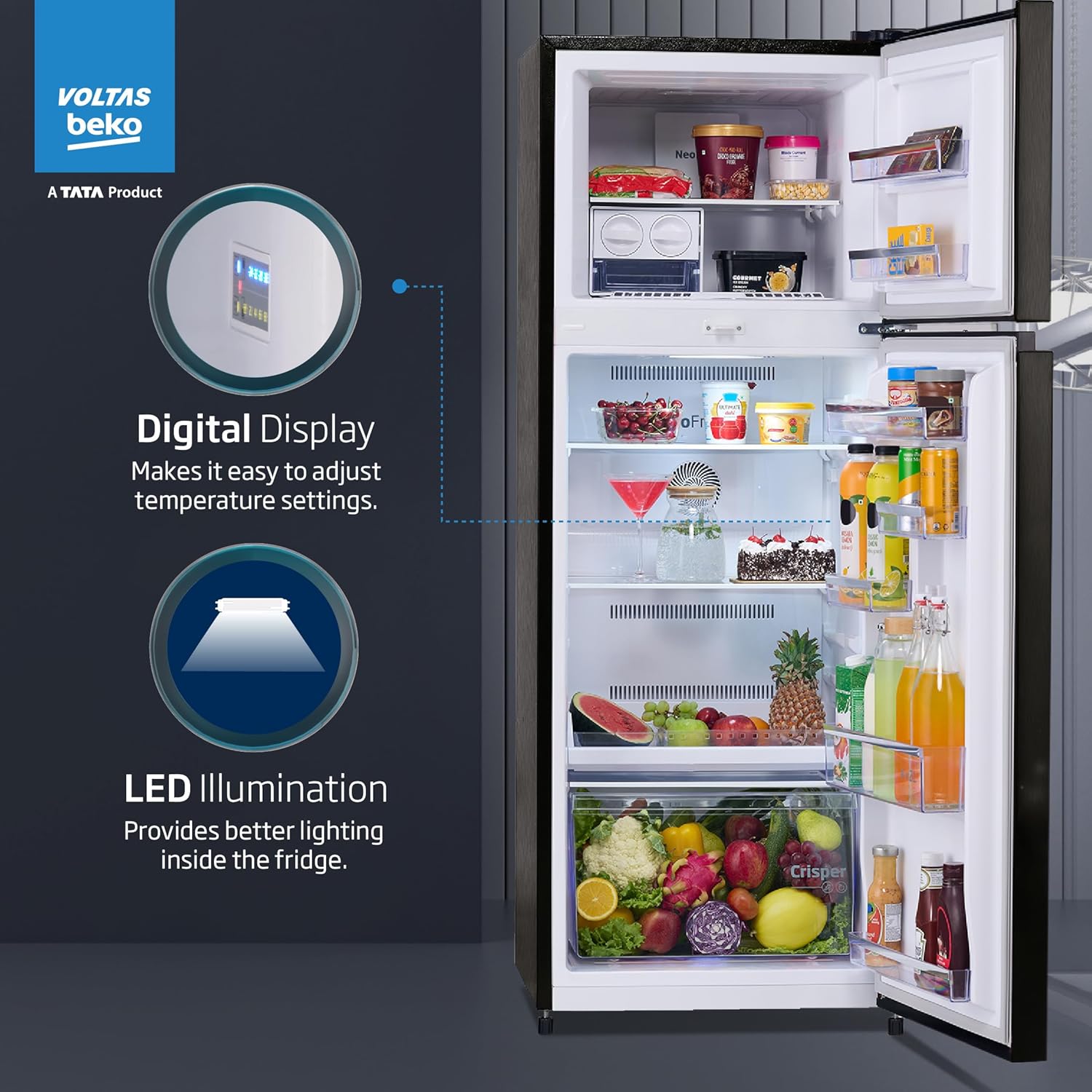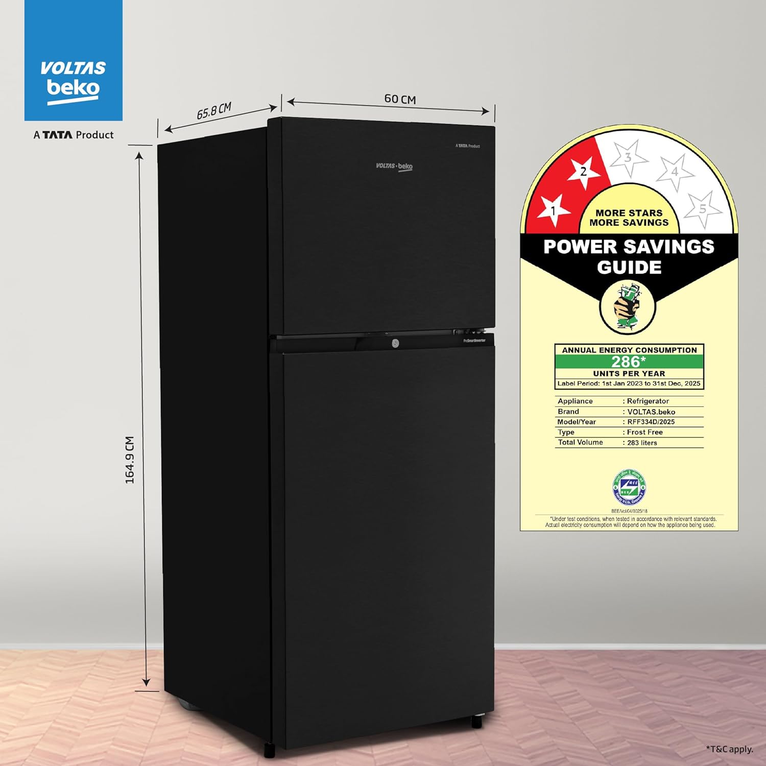 Voltas Beko, A Tata Product 283 L, 2 Star, 6-in-1 Adjustable Frost Free Inverter Double-Door Refrigerator (RFF334D/WPV100RXBD, Wooden Black)